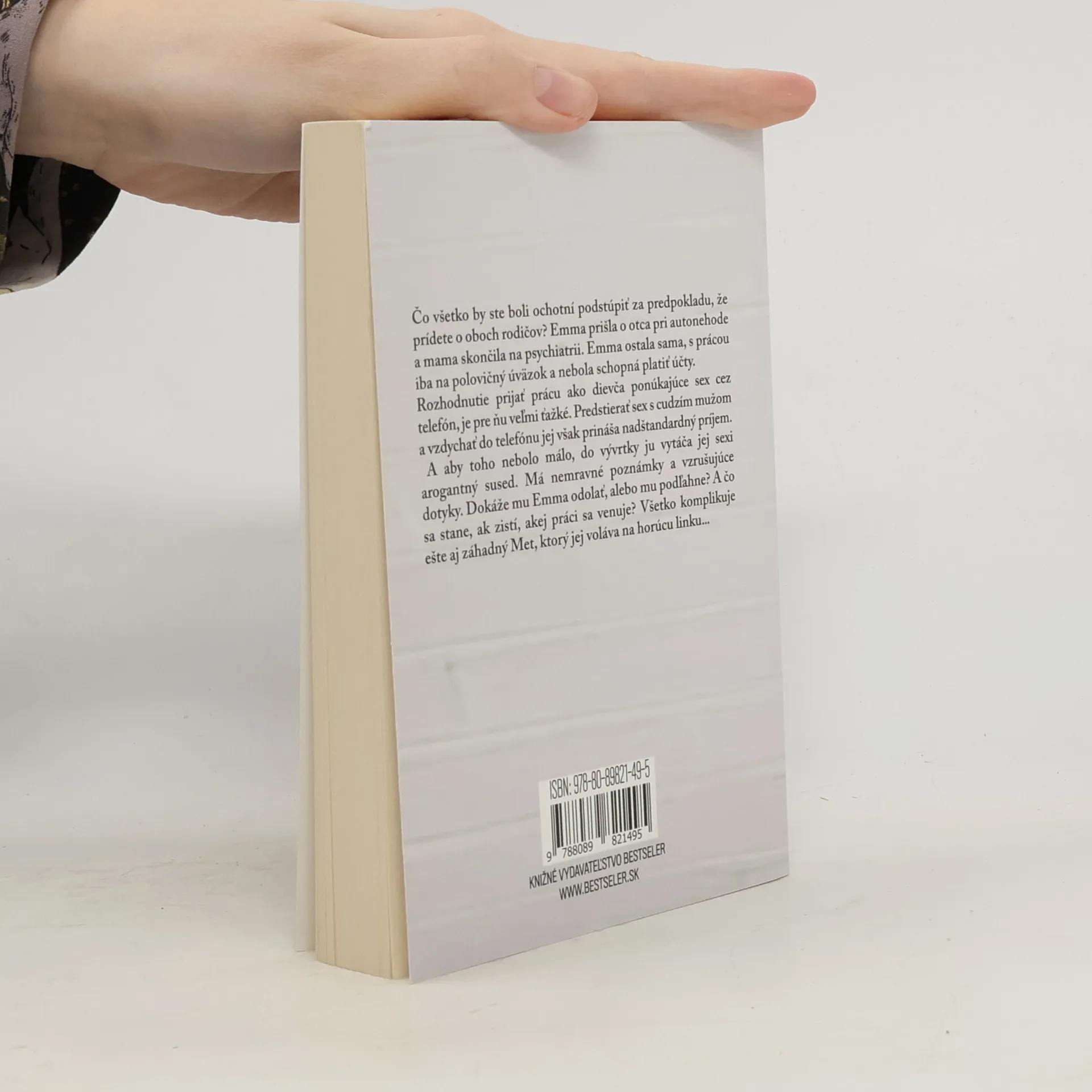 Čo všetko by ste boli ochotní podstúpiť za predpokladu, že prídete o oboch rodičov? Emma prišla o otca pri autonehode a mama skončila na psychiatrii. Emma ostala sama, s prácou iba na polovičný úväzok a nebola schopná platiť účty. Rozhodnutie prijať prácu ako dievča ponúkajúce sex cez telefón, je pre ňu veľmi ťažké. Predstierať sex s cudzím mužom a vzdychať do telefónu jej však prináša nadštandardný príjem. A aby toho nebolo málo, do vývrtky ju vytáča jej sexi arogantný sused. Má nemravné poznámky a vzrušujúce dotyky. Dokáže mu Emma odolať, alebo mu podľahne? A čo sa stane, ak zistí, akej práci sa venuje? Všetko komplikuje ešte aj záhadný Met, ktorý jej voláva na horúcu linku...
