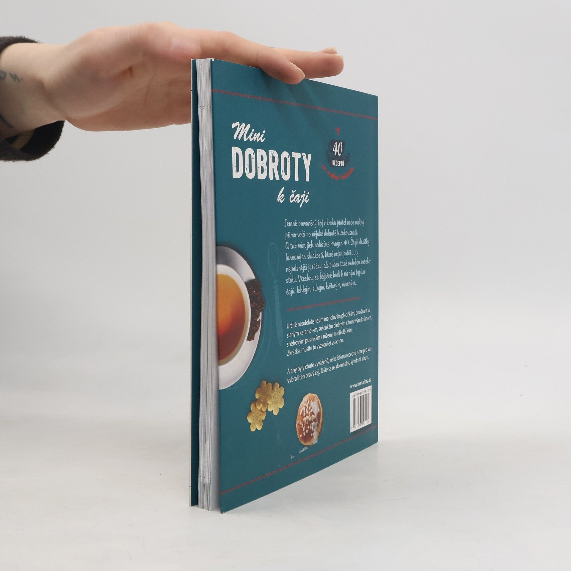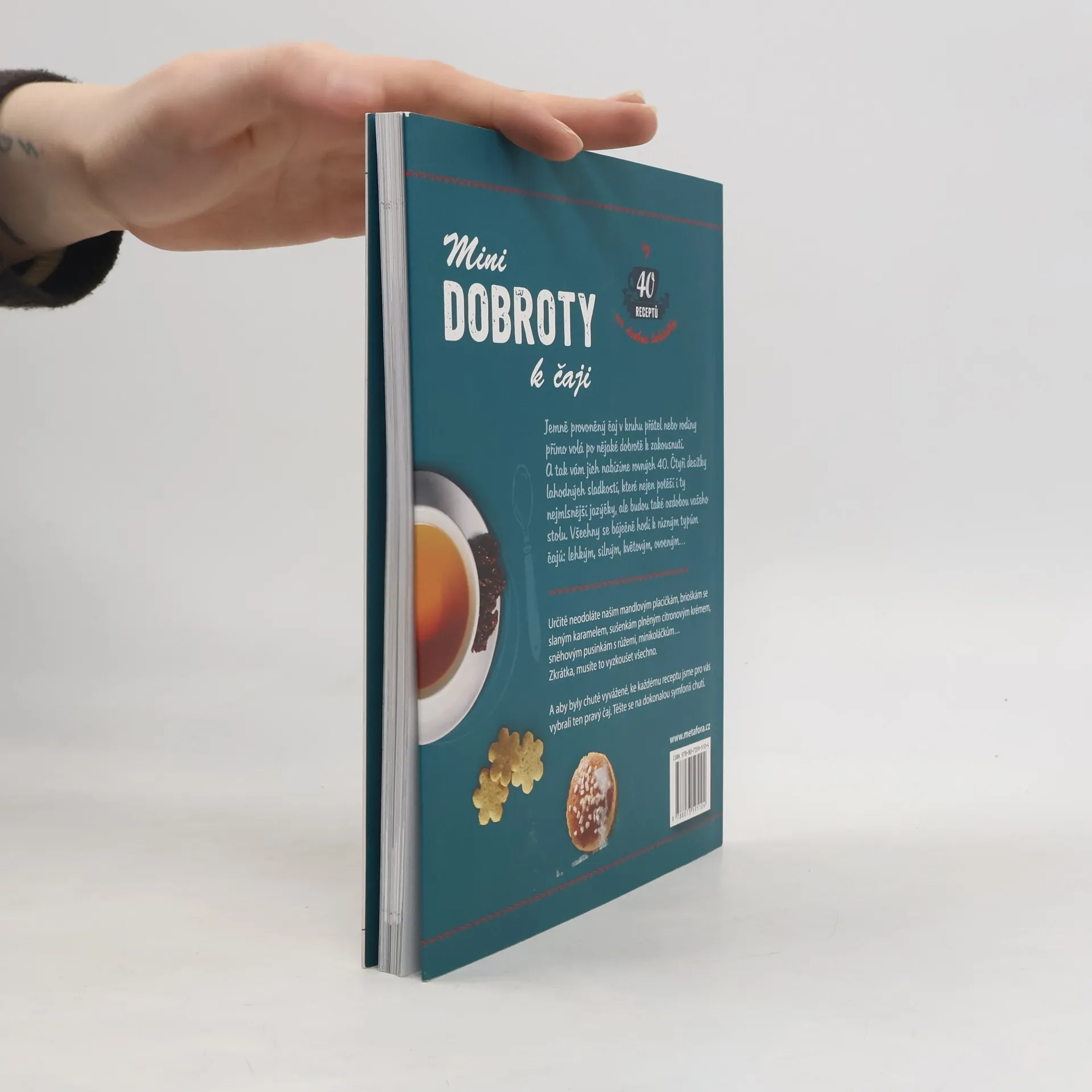 Malé pochoutky, které zpříjemní každý šálek čaje… Jemně provoněný čaj v kruhu přátel nebo rodiny přímo volá po nějaké dobrotě k zakousnutí. A tak vám jich nabízíme rovných čtyřicet. Čtyři desítky lahodných sladkostí, které potěší i ty nejmlsnější jazýčky, a ozdobí prostřený stůl. Určitě neodoláte křehkým mandlovým placičkám, brioškám se slaným karamelem, sušenkám plněným citronovým krémem, sněhovým pusinkám s růžemi, minikoláčkům i ostatním lákavým pochoutkám. Musíte je vyzkoušet všechny! Výborně se hodí k různým typům čajů, lehkým, silným, květovým i ovocným. A abyste nemuseli dlouho tápat, který čaj si uvařit, ke každému receptu jsme pro vás vybrali ten pravý. Kniha dává zakusit dokonalou a bezchybnou symfonii chutí.