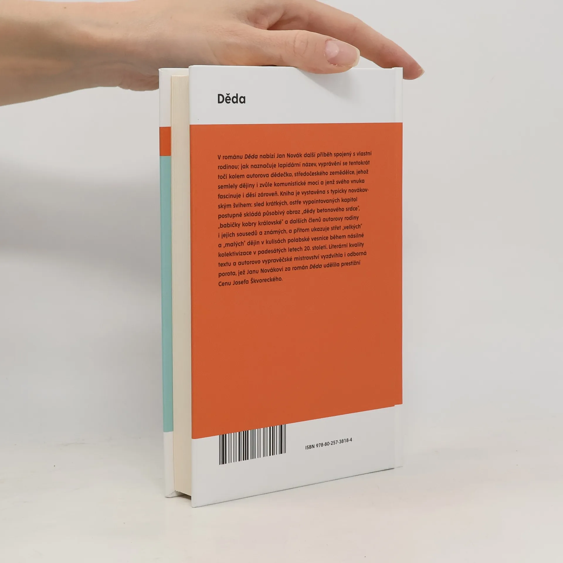 V románu Děda nabízí Jan Novák další příběh spojený s vlastní rodinou; jak naznačuje lapidární název, vyprávění se tentokrát točí kolem autorova dědečka, středočeského zemědělce, jehož semlely dějiny i zvůle komunistické moci a jenž svého vnuka fascinuje i děsí zároveň. Kniha je vystavěna s typicky novákovským švihem: sled krátkých, ostře vypointovaných kapitol postupně skládá působivý obraz „dědy betonového srdce“, „babičky kobry královské“ a dalších členů autorovy rodiny i jejich sousedů a známých, a přitom ukazuje střet „velkých“ a „malých“ dějin v kulisách polabské vesnice během násilné kolektivizace v padesátých letech minulého století.