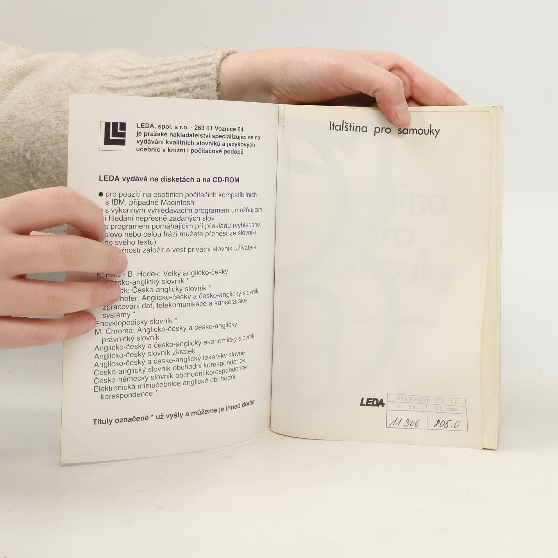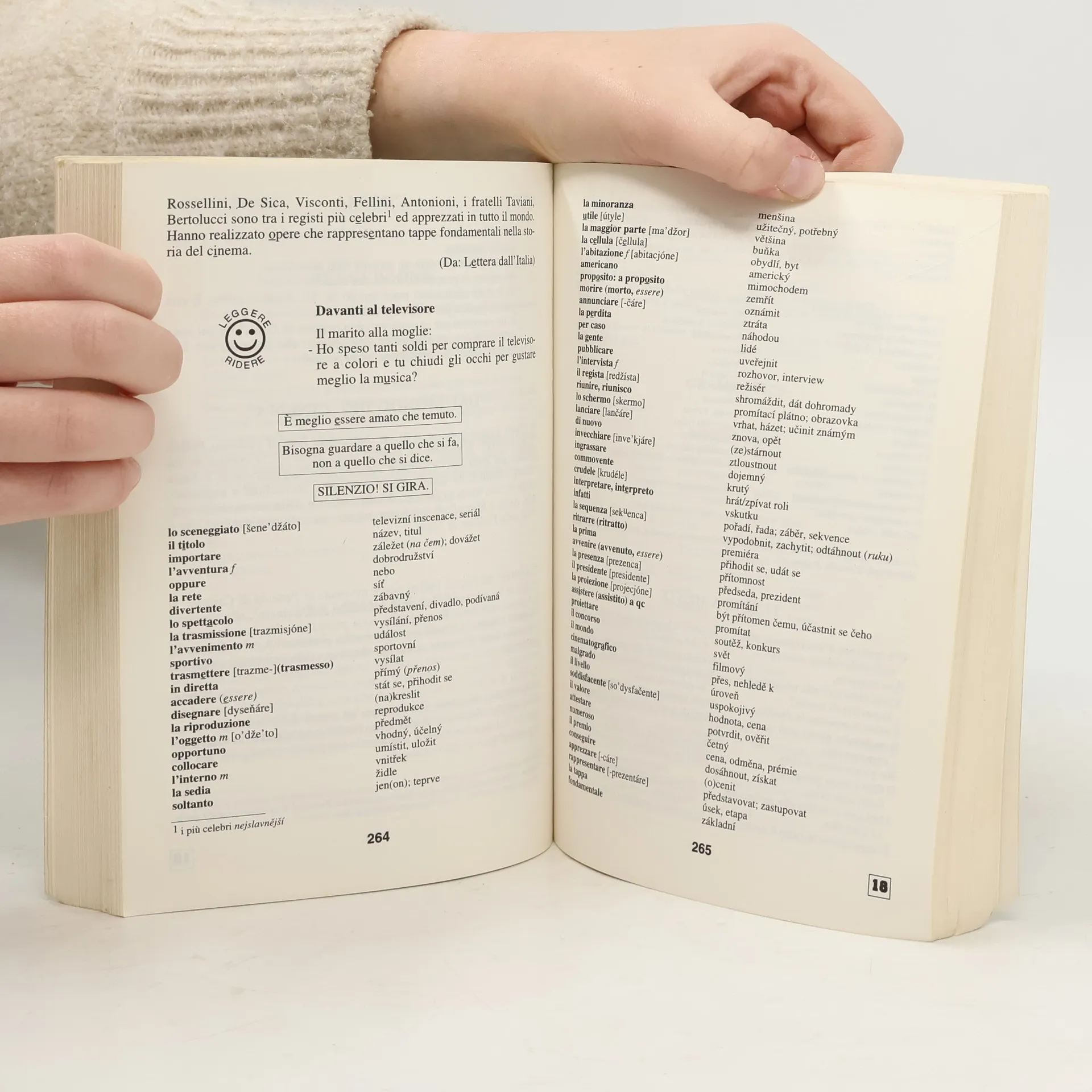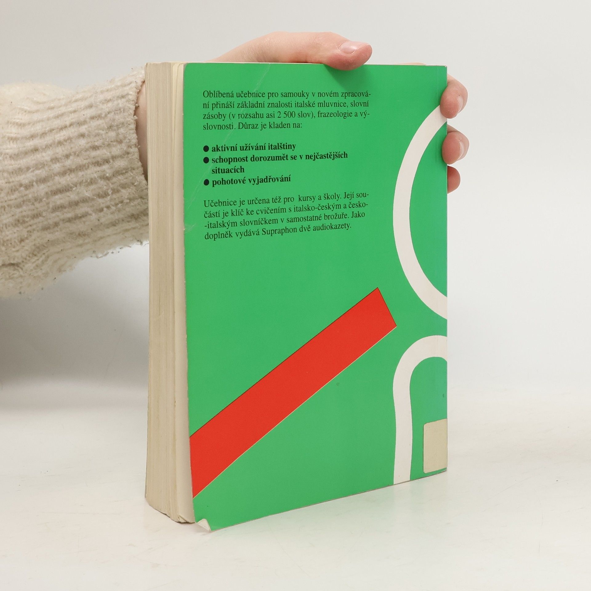 Oblíbená učebnice pro samouky v novém zpracování přináší základní znalosti italské mluvnice, slovní zásoby (v rozsahu asi 2500 slov ), frazeologie a výslovnosti. Důraz je kladen na: aktivní užívání italštiny schopnost dorozumět se v nejčastějších situacích pohotové vyjádřování Učebnice je určena též pro školy a kursy. Její součásti je brožura obsahující klíč ke cvičením s italsko-českým a česko-italským slovníčkem. Jako samostatný doplněk vydává Supraphon audionahrávku.... celý text