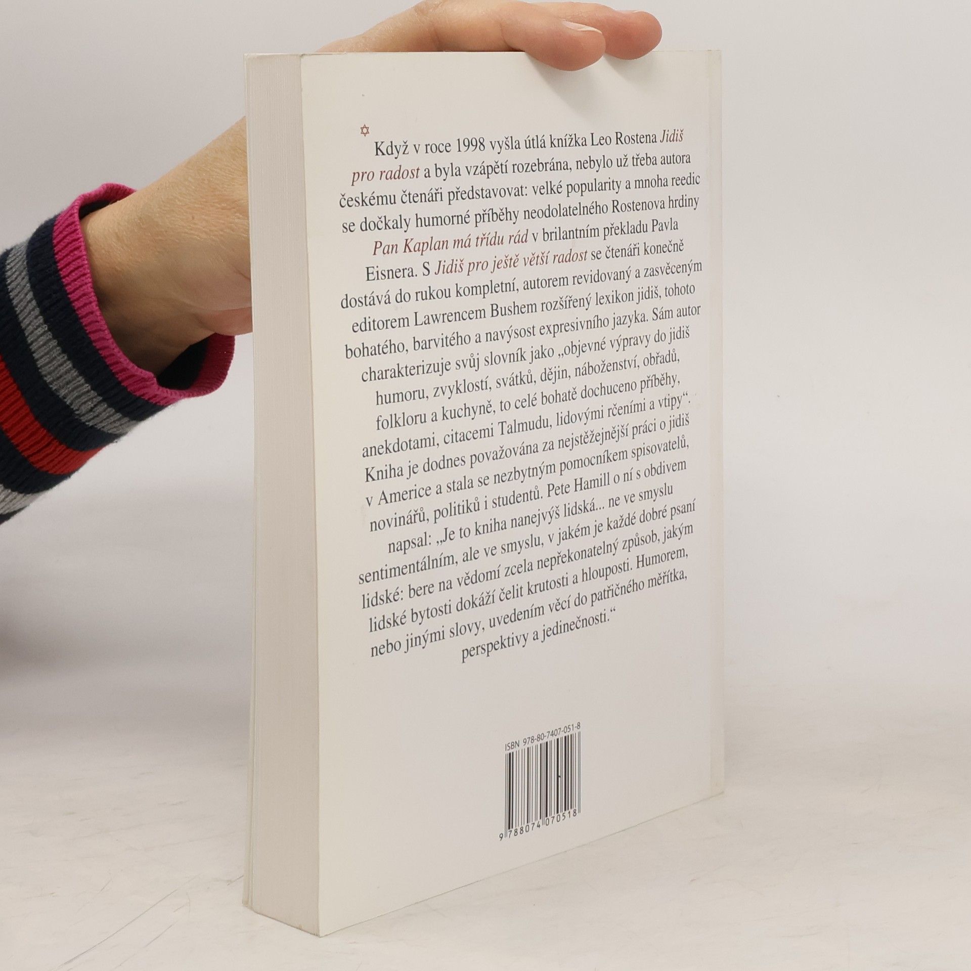 Kompletní slovník jidiš výrazů doprovázených příběhem, anekdotou, nebo hořkou glosou o životě, je rozšířenou variací knihy Jidiš pro radost. Autor, americký historik, sociolog, reportér a vypravěč, vytvořil specifický slovník jidiš výrazů, používaných židovskou komunitou po celém světě, a doprovodil je příběhy plnými lidové moudrosti, svébytnými židovskými anekdotami, zhuštěnými do umění sebeironie, aforismy a historkami. Tím vším originálně a vtipně ilustruje význam slova a výrazu.