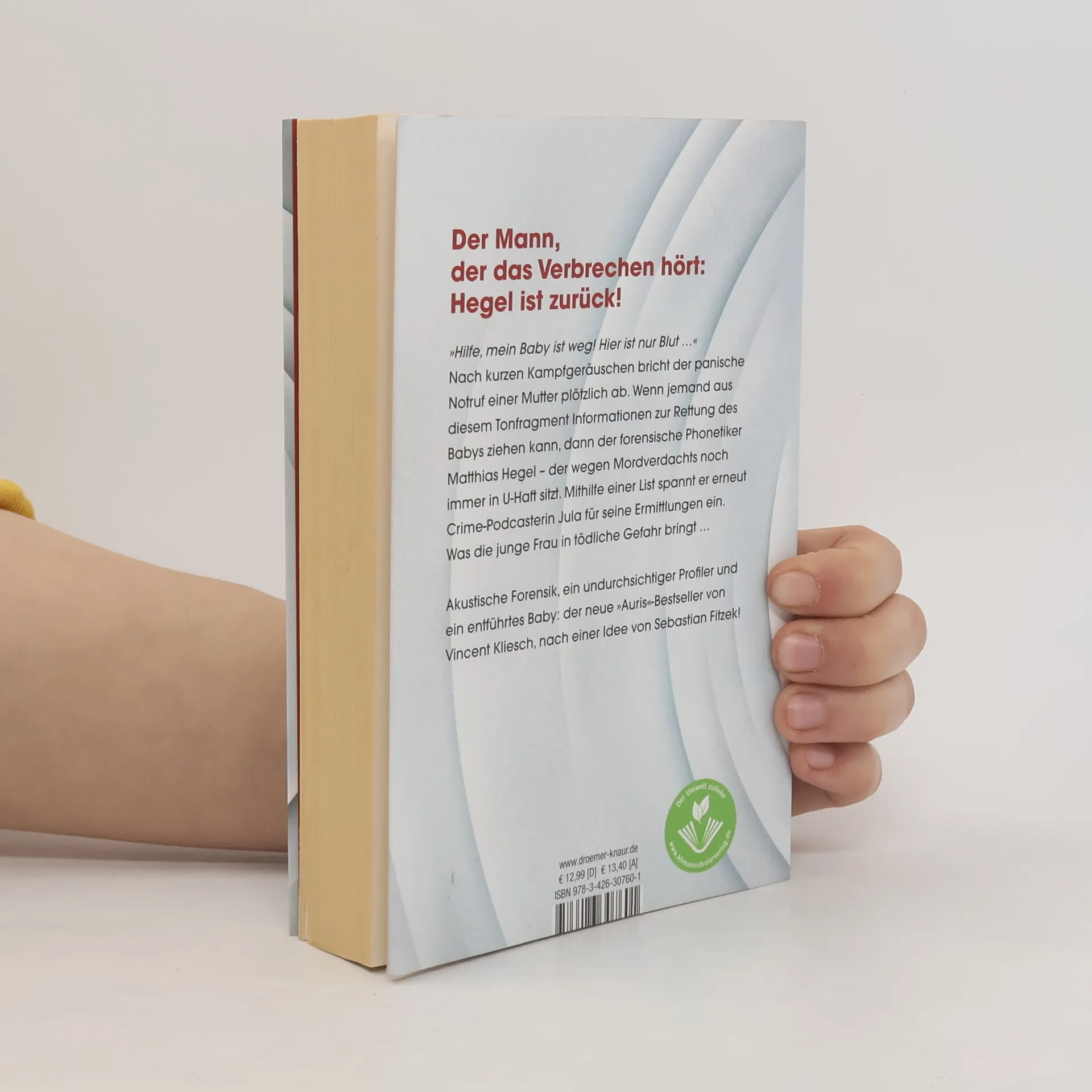 Akustische Forensik, ein undurchsichtiger Profiler und ein entführtes Baby:die rasante Fortsetzung des Nr.-1-Spiegel-Bestsellers »Auris« der Thriller-Autoren Vincent Kliesch und Sebastian Fitzek! »Hilfe, mein Baby ist weg! Hier ist nur Blut …« Nach kurzen Kampfgeräuschen bricht der panische Notruf einer Mutter bei der Nummer 112 plötzlich ab. Wenn jemand aus diesem Tonfragment Rückschlüsse auf den Aufenthaltsort der Frau ziehen kann, dann der forensische Phonetiker Matthias Hegel – den einige nach wie vor für einen Mörder halten.True-Crime-Podcasterin Jula Ansorge ist es zwar gelungen, Hegel vom Mordverdacht an seiner Frau zu entlasten, doch dabei ist sie der dunklen Seite des genialen Profilers deutlich zu nahe gekommen.Als Hegel nun im Fall des entführten Babys erneut auf ihre Recherche-Fähigkeiten zurückgreifen will, weigert Jula sich zunächst. Doch kann sie das Baby und seine Mutter wirklich ihrem Schicksal überlassen? Und was ist mit den Informationen zu ihrem tot geglaubten Bruder Moritz, die Hegel ihr angeblich beschaffen will? Auch im zweiten Teil der Thriller-Reihe ziehen die Bestseller-Autoren Vincent Kliesch und Sebastian Fitzek wieder alle Register: Nichts ist, wie es auf den ersten Blick scheint, und niemand bleibt so unschuldig, wie er es gern wäre. Rasante Spannung für die Fans außergewöhnlicher Thriller mit mehr als einer unerwarteten Wendung!