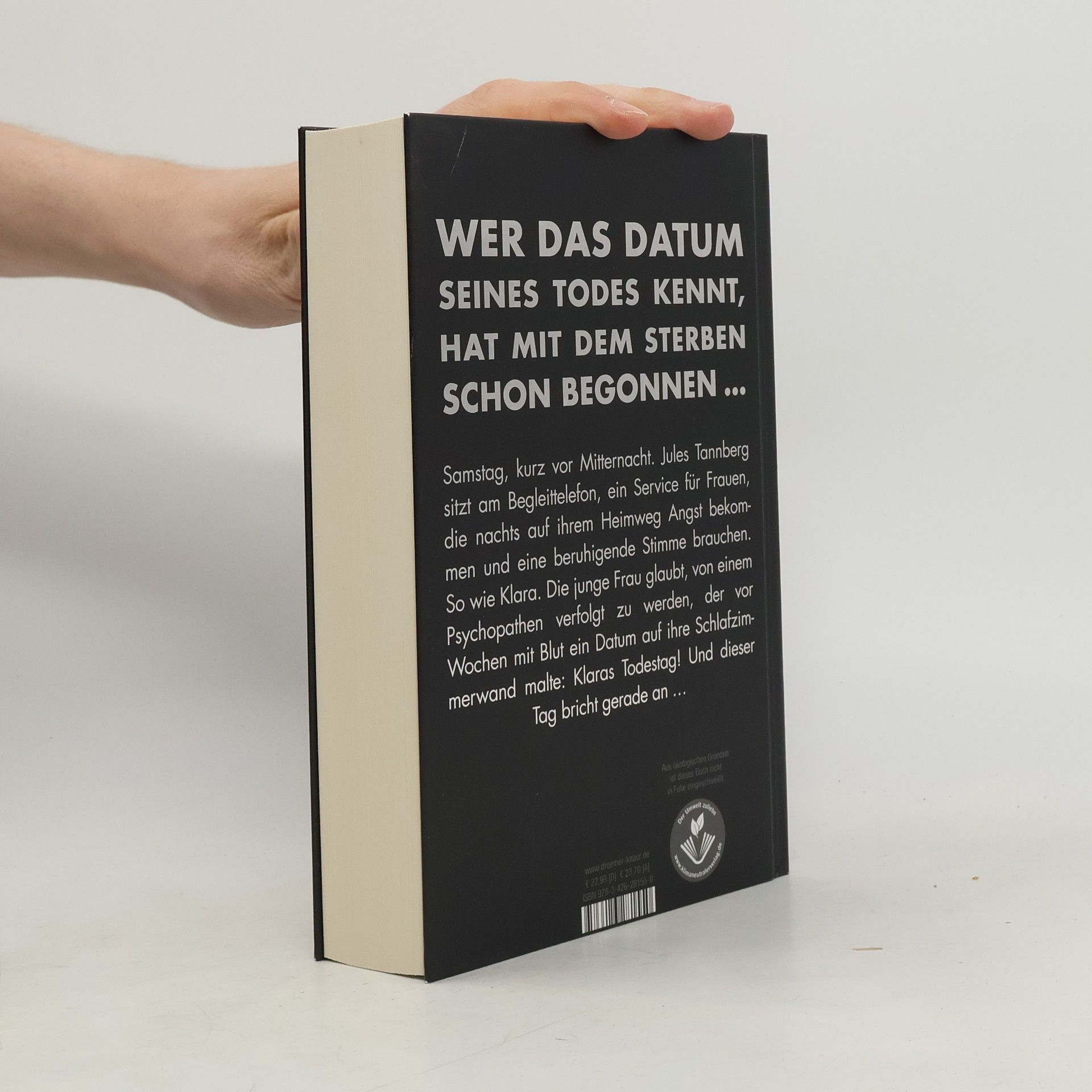 Wer das Datum seines Todes kennt, hat mit dem Sterben schon begonnen - der neue Bestseller von Sebastian Fitzek! Es ist Samstag, kurz nach 22.00 Uhr. Jules Tannberg sitzt am Begleittelefon. Ein ehrenamtlicher Telefonservice für Frauen, die zu später Stunde auf ihrem Heimweg Angst bekommen und sich einen telefonischen Begleiter wünschen, dessen beruhigende Stimme sie sicher durch die Nacht nach Hause führt - oder im Notfall Hilfe ruft. Noch nie gab es eine wirklich lebensgefährliche Situation. Bis heute, als Jules mit Klara spricht. Die junge Frau hat entsetzliche Angst. Sie glaubt, von einem Mann verfolgt zu werden, der sie schon einmal überfallen hat und der mit Blut ein Datum auf ihre Schlafzimmerwand malte: Klaras Todestag! Und dieser Tag bricht in nicht einmal zwei Stunden an ... Geheimnisvoll, beklemmend, nervenaufreibend. Sebastian Fitzeks bislang unheimlichster Psychothriller.