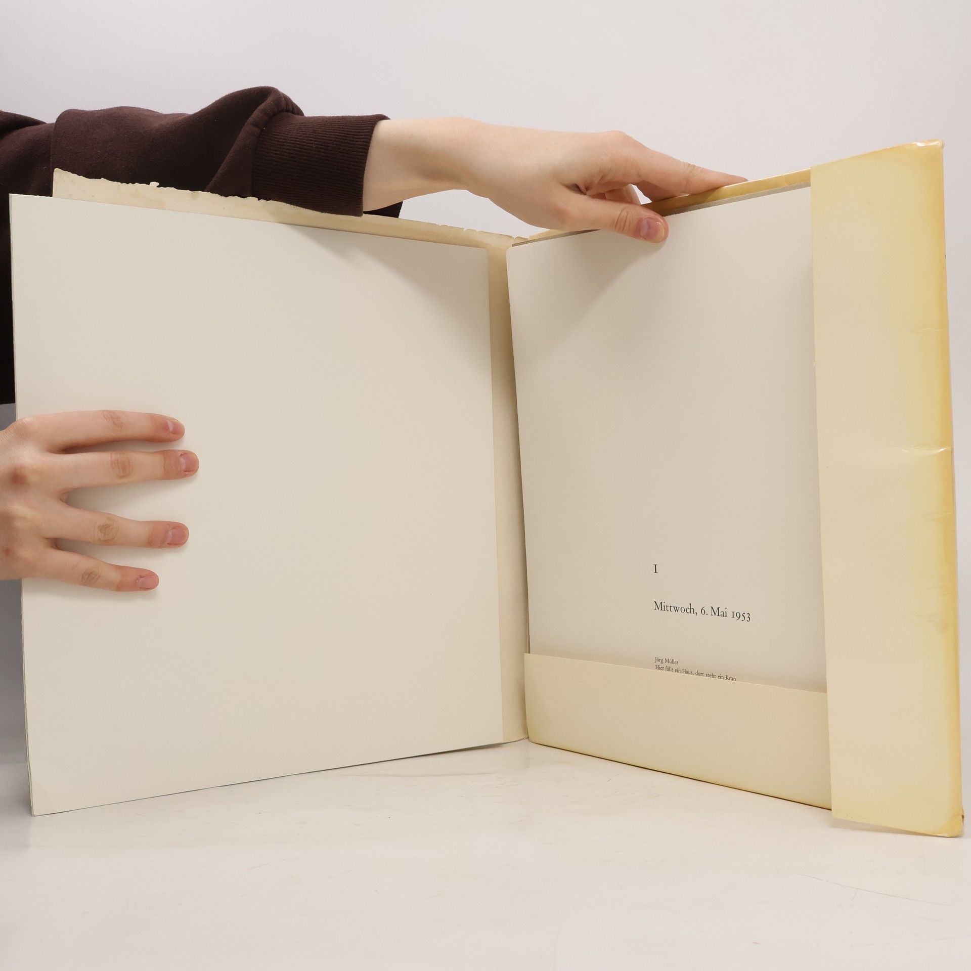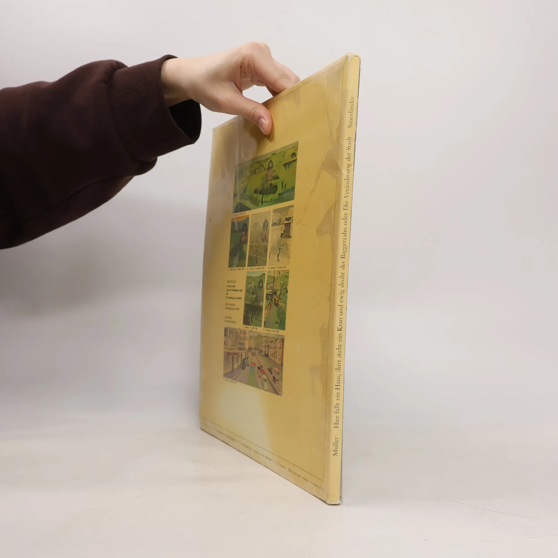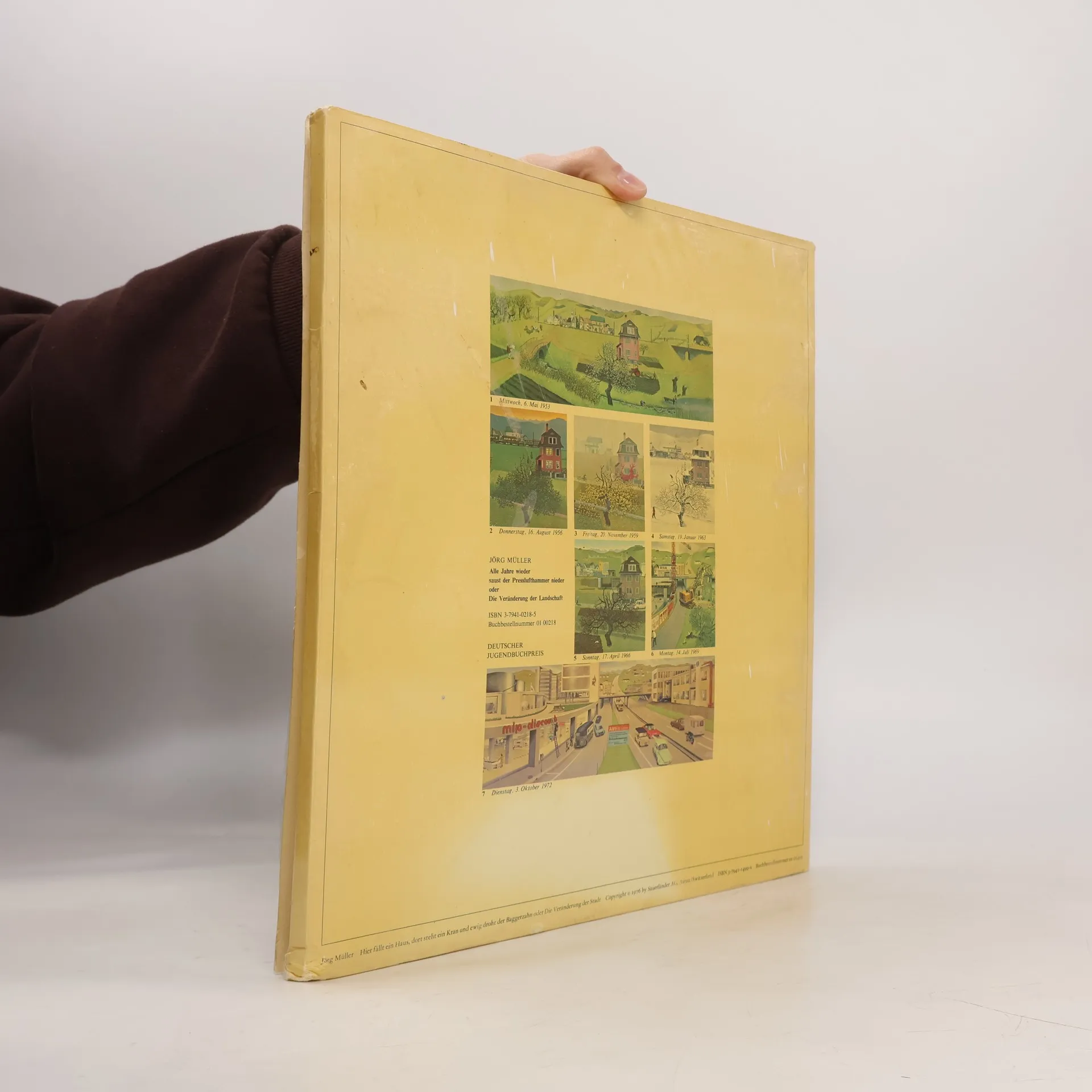 "Hier fällt ein Haus, dort steht ein Kran und ewig droht der Baggerzahn oder Die Veränderung der Stadt" ist eine Bildermappe des Schweizer Künstlers Jörg Müller aus dem Jahr 1973. Sie zeigt gemäss ihrem Untertitel „Die Veränderung der Landschaft“ in Zeiten wirtschaftlichen Aufstiegs. Sie machte den Illustrator Müller auf Anhieb bekannt. Die sieben Bilder zeigen den immer gleichen Ausschnitt einer Landschaft im Wechsel der Jahreszeiten im Abstand von nur drei Jahren. Die Kritik am Fortschrittsglauben ihrer Entstehungszeit, die in den Bildern nüchtern unpädagogisch zum Ausdruck kam, machten die Mappe, die 1974 den deutschen Jugendbuchpreis erhielt, zu einem Novum im Bereich Bilderbuch. Eine zweite Bildmappe Müllers, „Hier fällt ein Haus, dort steht ein Kran und ewig droht der Baggerzahn oder Die Veränderung der Stadt“ (1976), zeigt den Wandel einer Stadt als unaufhaltsamen Fortschritt in ähnlich detailgetreuen Abbildungen.