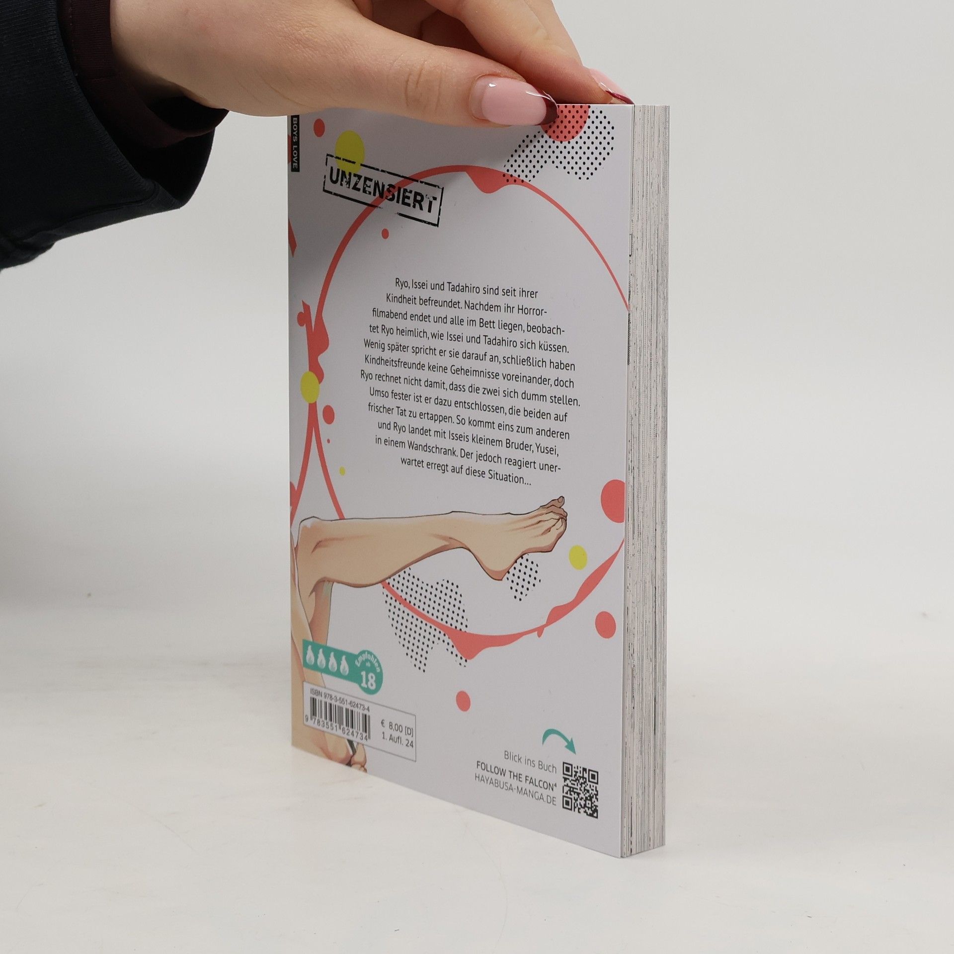 Humorvoller Yaoi-Manga mit Friends-to-Lovers-Dynamik. Ryo beobachtet heimlich, wie seine Freunde Issei und Tadahiro sich küssen, und will sie auf frischer Tat ertappen. Dabei gerät er mit Isseis Bruder Yusei in eine unerwartete Situation. Von Erfolgsautorin Yuo Yodogawa, Serie ist noch nicht abgeschlossen.