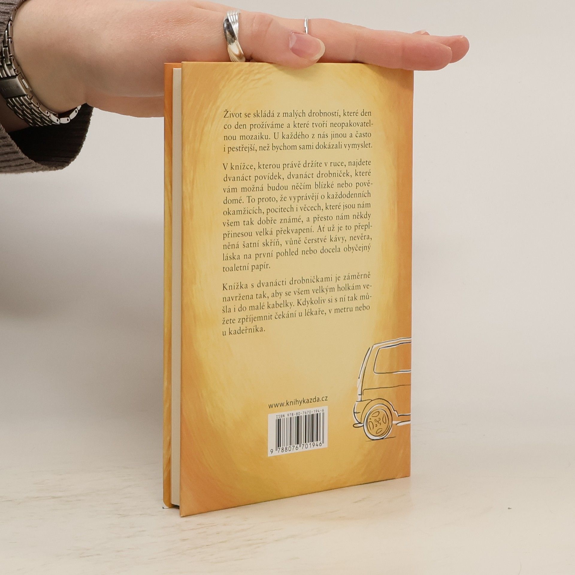 Život se skládá z malých drobností, které den co den prožíváme a které tvoří neopakovatelnou mozaiku. U každého z nás jinou a často i pestřejší, než bychom sami dokázali vymyslet. V knížce, kterou právě držíte v ruce, najdete dvanáct povídek, dvanáct drobniček, které vám možná budou něčím blízké nebo povědomé. To proto, že vyprávějí o každodenních okamžicích, pocitech i věcech, které jsou nám všem tak dobře známé, a přesto nám někdy přinesou velká překvapení. Ať už je to přeplněná šatní skříň, vůně čerstvé kávy, nevěra, láska na první pohled nebo docela obyčejný toaletní papír. Knížka s dvanácti drobničkami je záměrně navržena tak, aby se všem velkým holkám vešla i do malé kabelky. Kdykoliv si s ní tak můžete zpříjemnit čekání u lékaře, v metru nebo u kadeřníka.