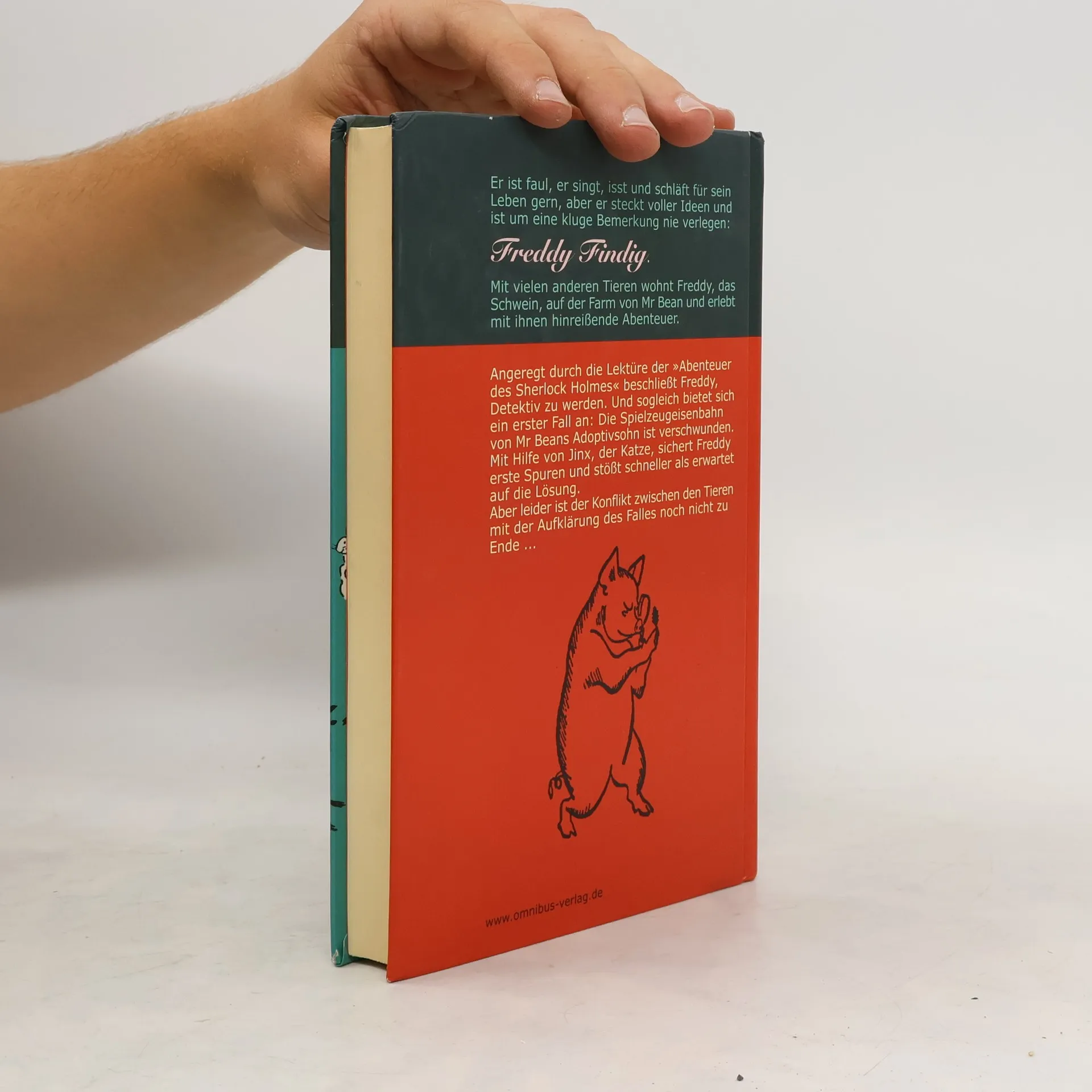 Freddy Findig, das charmante Schwein, träumt davon, Detektiv zu werden und erlebt auf der Farm von Mr. Bean witzige Abenteuer. Inspiriert von Sherlock Holmes, löst er den Fall der verschwundenen Spielzeugeisenbahn und entdeckt, dass die Ratten dahinterstecken. Doch die Situation eskaliert, als die Ratten Jinx in Verdacht bringen.