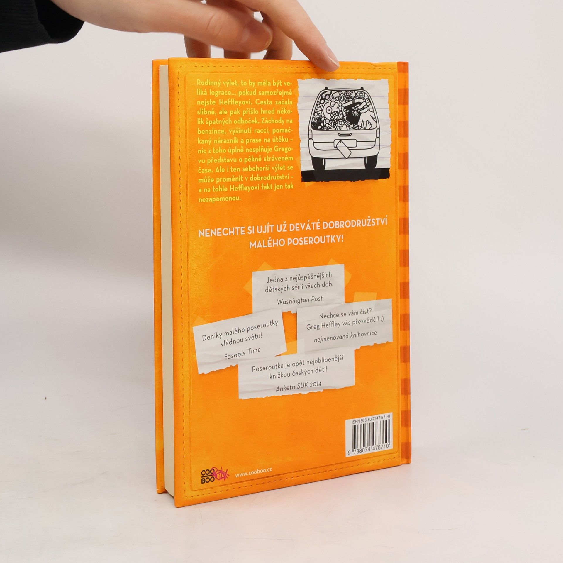 Rodinný výlet by měla být veliká legrace… pokud samozřejmě nejste Heffleyovi. Cesta začala slibně, ale pak přišlo hned několik špatných odboček. Záchody na benzínce, vyšinutí racci, pomačkaný nárazník a prase na útěku – nic z toho úplně nesplňuje Gregovu představu o pěkně stráveném čase. Ale i ten sebehorší výlet se může proměnit v dobrodružství – a na tohle Heffleyovi fakt jen tak nezapomenou. Nenechte si ujít už deváté dobrodružství malého poseroutky!
