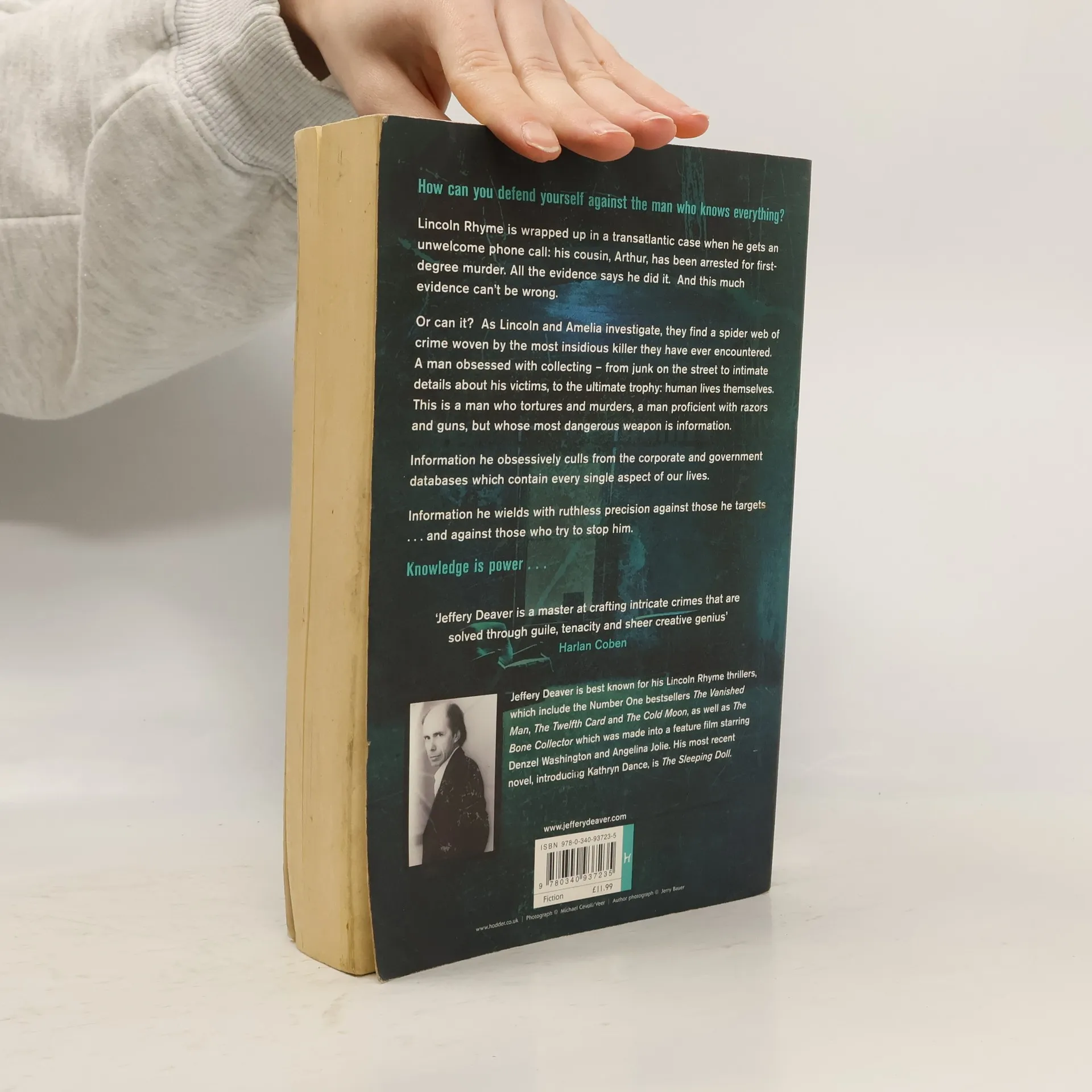 Rhyme's cousin has been arrested for murder. The evidence clearly shows he did it, but Rhyme agrees to check things out. It turns out that the cousin along with other people has been wrongly convicted because the true killer knows every single detail about the lives of the victims he kills and the men he sets up to take the fall for those crimes. This allows him to get close to the victims under false pretenses, murder or rape, and escape safely. And then he sets up others to take the fall for his crimes, planting incontrovertible evidence... Rhyme, Sachs and the rest of the team have to find out who at the huge, ominous data mining company is getting access to this information. Meanwhile the villain--known only by a number to us--realizes he's being pursued and turns his knowledge of data and information into a weapon. Oh, and lest things seem too delicate, he also gets information through good old-fashioned murder and torture too...