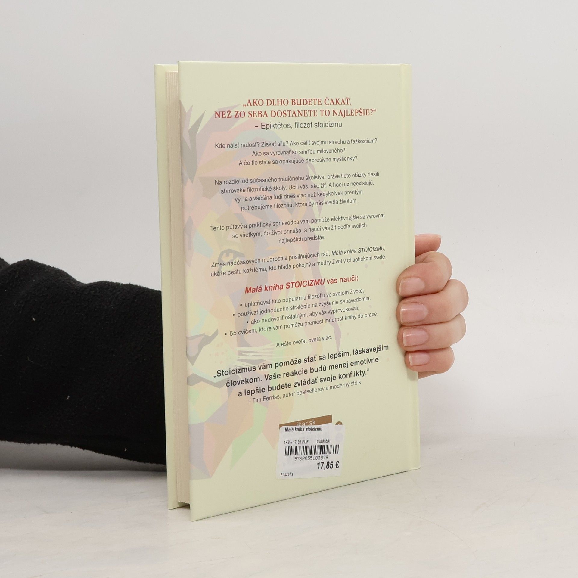Kde nájsť radosť? Získať silu? Ako čeliť svojmu strachu a ťažkostiam? Ako sa vyrovnať so smrťou milovaného? A čo tie stále sa opakujúce depresívne myšlienky? Nech už prechádzate akoukoľvek namáhavou životnou etapou, stoici vám poradia, ako sa efektívnejšie vyrovnať so všetkým, čo vám život prinesie a ako žiť podľa svojich najlepších predstáv. I napriek starobylosti tejto filozofie pôsobí jej múdrosť prekvapivo moderne a sviežo a jej hodnota pri hľadaní šťastného a zmysluplného života je nepopierateľná. V knihe nájdete osvedčené spôsoby, ako vystúpiť z emocionálnej horskej dráhy, znížiť negatívne emócie a zostať pokojný. Ako žiť podľa súboru overených hodnôt a rozvíjať pozitívne vlastnosti, akými sú odvaha, trpezlivosť, sebadisciplína, vytrvalosť a duševná sila. Ale nájdete v nej aj praktické stratégie, ako zlepšiť svoje momentálne vedomie a lepšie zvládať seba a svoje konanie v tomto chaotickom svete. Pretože jadrom tejto praktickej filozofie je viesť šťastný život aj (a najmä) tvárou v tvár nepriazni osudu.