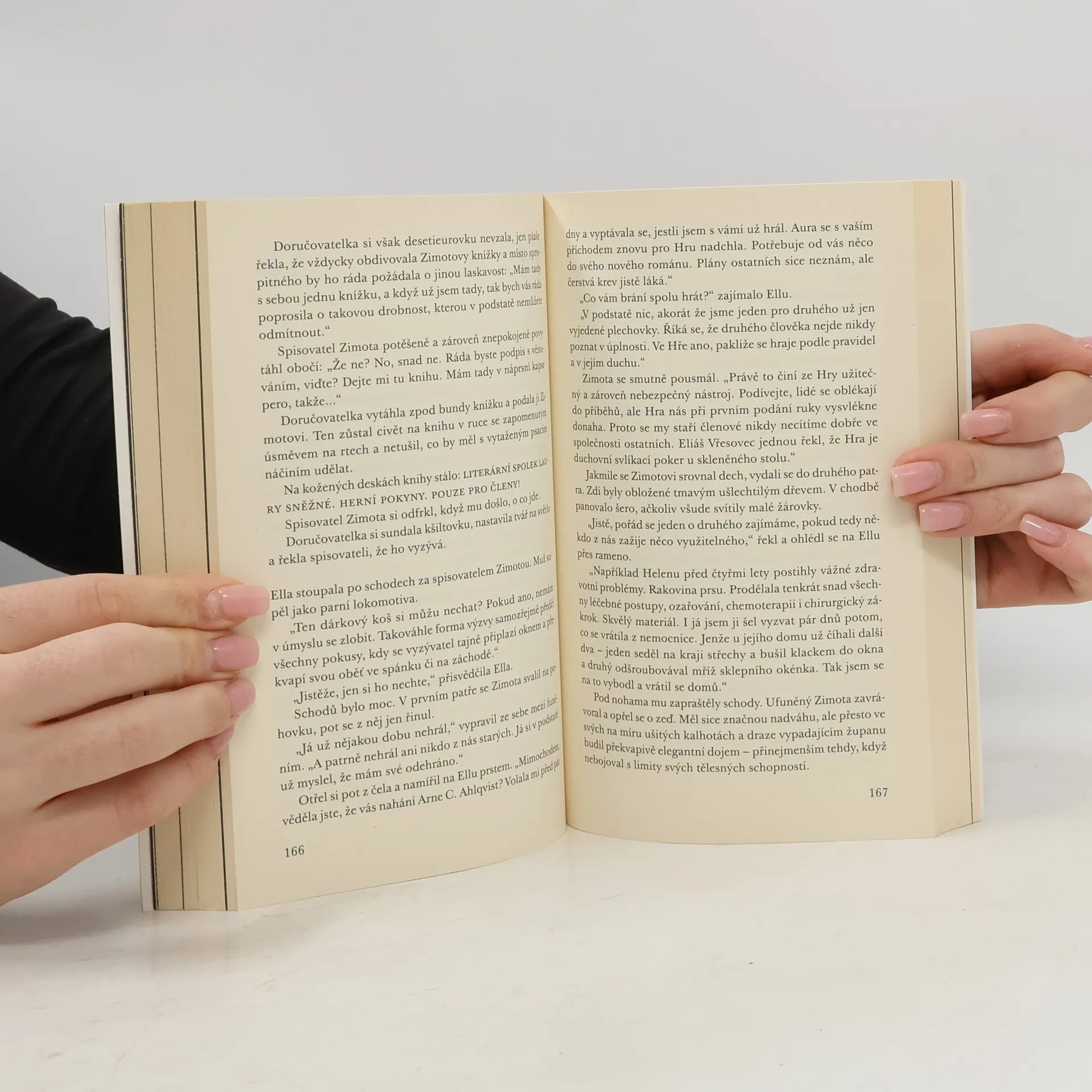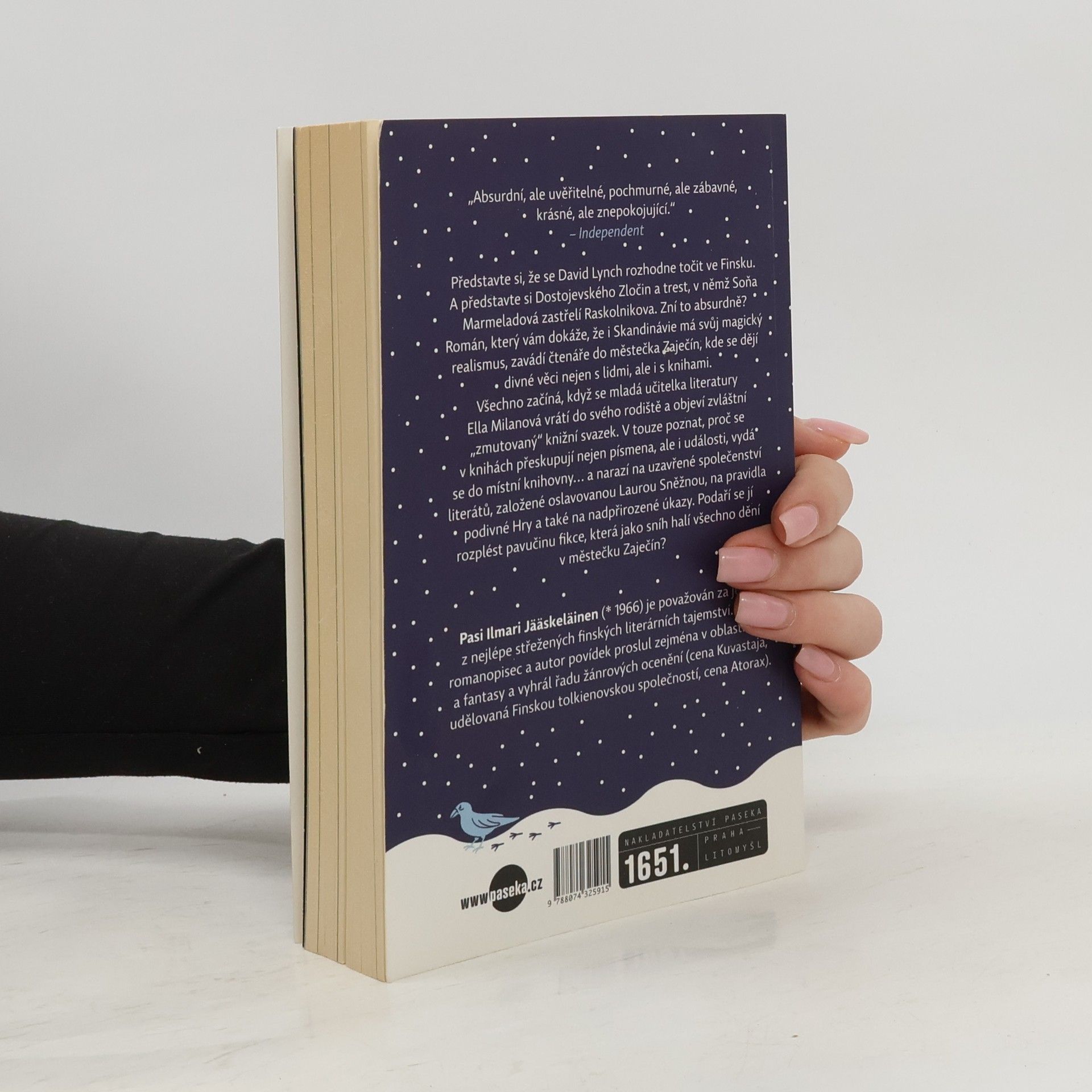 Představte si Lynchův Twin Peaks zasazený do Finska. A představte si Dostojevského Zločin a trest, v němž Soňa Marmeladová zastřelí Raskolnikova. Zní to absurdně? Román, který vám dokáže, že i Skandinávie má svůj magický realismus, zavádí čtenáře do městečka Zaječín, kde se dějí divné věci nejen s lidmi, ale i s knihami. Všechno začíná, když se mladá učitelka literatury Ella Milanová vrátí do svého rodiště a objeví tam zvláštní knižní svazek, který jí vyrazí dech. V místní knihovně se vydá po stopě záhadných událostí... a brzy narazí na uzavřené společenství literátů, založené oslavovanou Laurou Sněžnou, na pravidla podivné Hry a také na nadpřirozené úkazy. Podaří se jí odhalit, co se ve skutečnosti stalo s desátým členem literárního spolku, a rozplést pavučinu všeprostupující fikce?