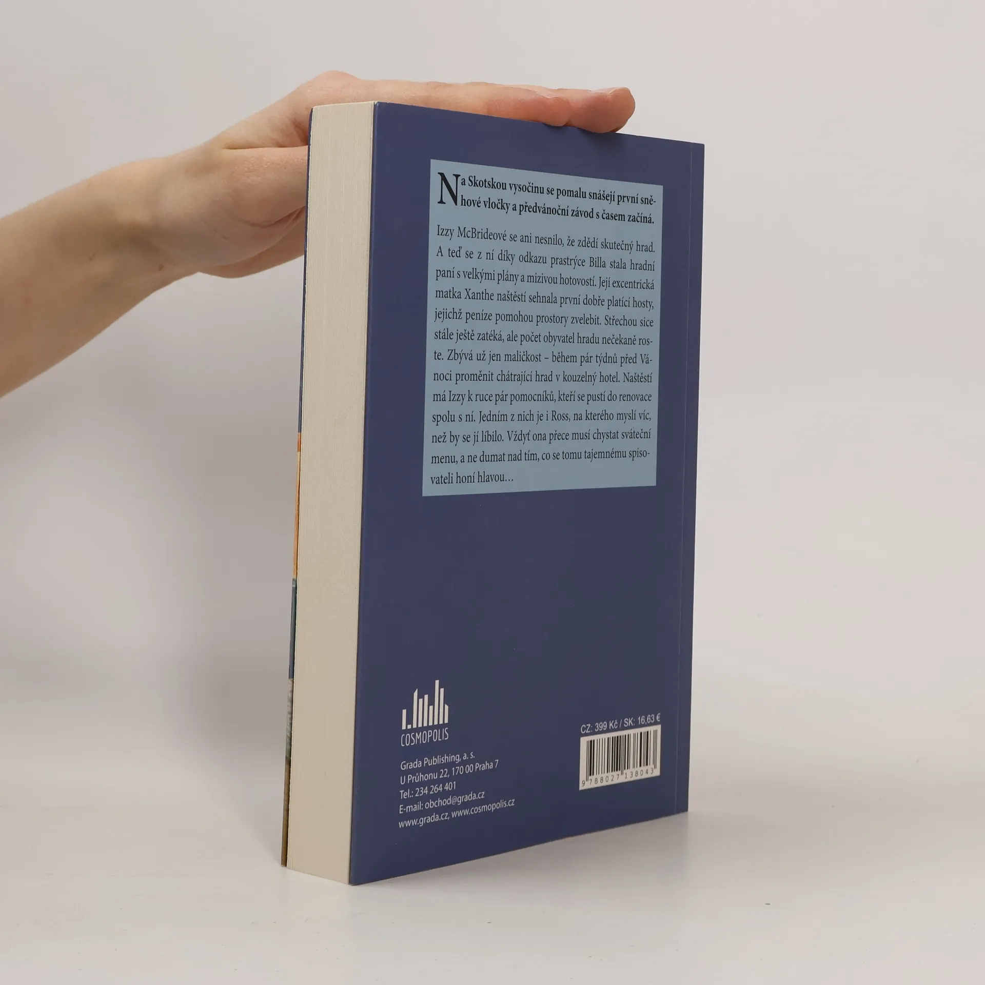 Na Skotskou vysočinu se pomalu snášejí první sněhové vločky a předvánoční závod s časem začíná Izzy McBrideové se ani nesnilo, že zdědí skutečný hrad. A teď se z ní díky odkazu prastrýce Billa stala hradní paní s velkými plány a mizivou hotovostí. Její excentrická matka Xanthe naštěstí sehnala první dobře platící hosty, jejichž peníze pomohou prostory zvelebit. Střechou sice stále ještě zatéká, ale počet obyvatel hradu nečekaně roste. Zbývá už jen maličkost – během pár týdnů před Vánoci proměnit chátrající hrad v kouzelný hotel. Naštěstí má k ruce pár pomocníků, kteří se pustí do renovace spolu s ní. Jedním z nich je i Ross, na kterého Izzy myslí víc, než by se jí líbilo. Vždyť ona přece musí chystat sváteční menu, a ne dumat nad tím, co se tomu tajemnému spisovateli honí hlavou…