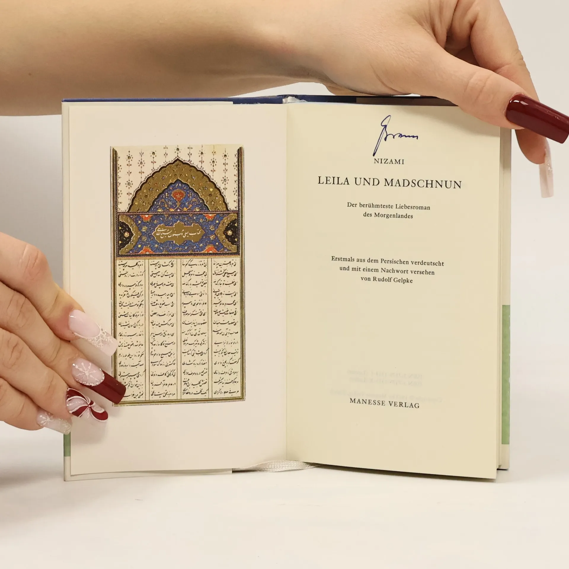 Der Beduinenjüngling Qeis entbrennt in rasender Liebe zu Leila, die diese Liebe erwidert. Leilas Vater jedoch lehnt eine Heirat ab und gibt seine Tochter einem anderen Mann zur Frau. Darüber wird Qeis zum Madschnun, zum Wahnsinnigen, der, in der Wüste umherirrend, seinen Schmerz in ergreifende Verse faßt. Die Fabel dieser grenzenlosen und absoluten Liebe war bereits fünfhundert Jahre bekannt, als sich der persische Dichter Nizami 1188 ihrer annahm. Nizami verwob die verstreuten und uneinheitlichen arabischen Überlieferungen zu einer bedeutenden, in sich geschlossenen Dichtung. Erst durch ihn erfuhr die Geschichte jene mystische Verinnerlichung und zugleich Ausweitung ins allgemein Menschliche, die sie aus der Enge einer romantischen Beduinenliebe in die Sphäre großer und überzeitlich gültiger Dichtung hob. Den vorliegenden Band schmücken zwölf bezaubernde Farbminiaturen aus persischen Originalhandschriften.