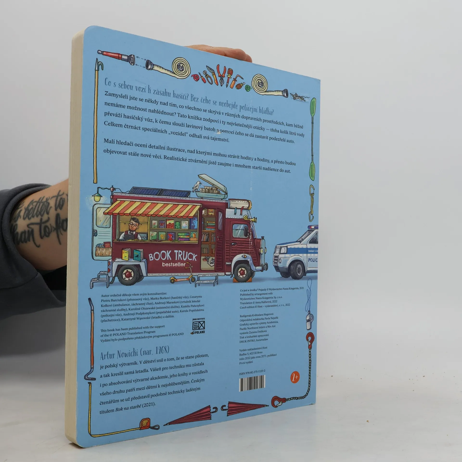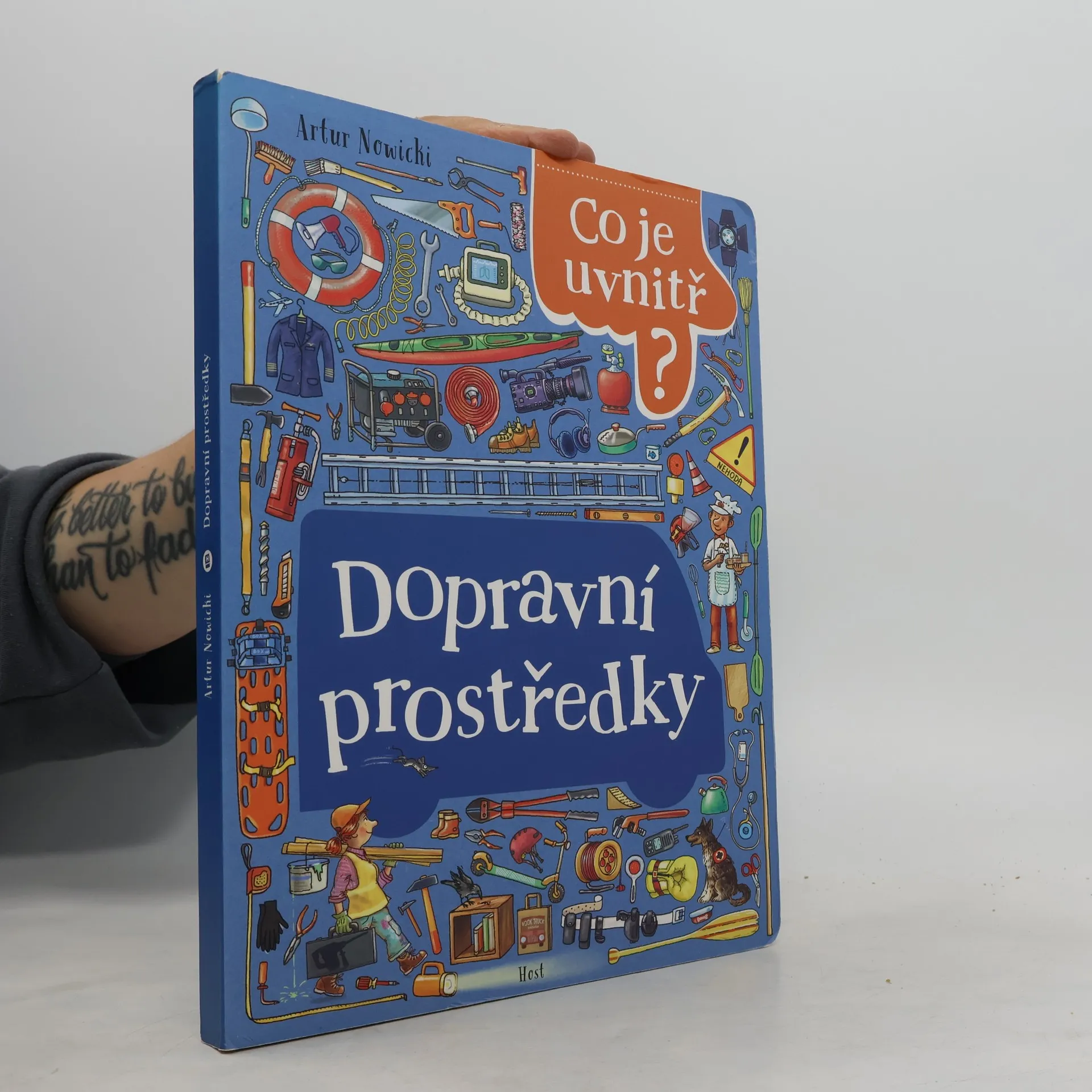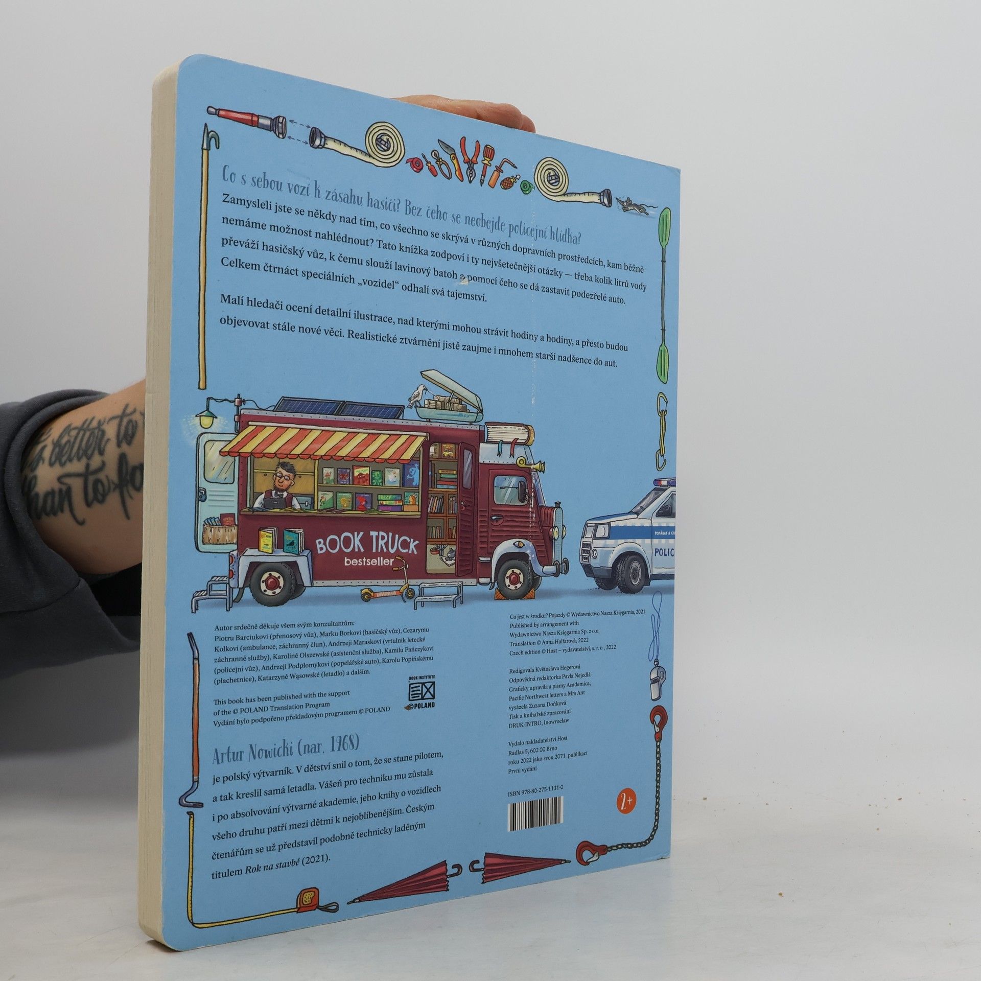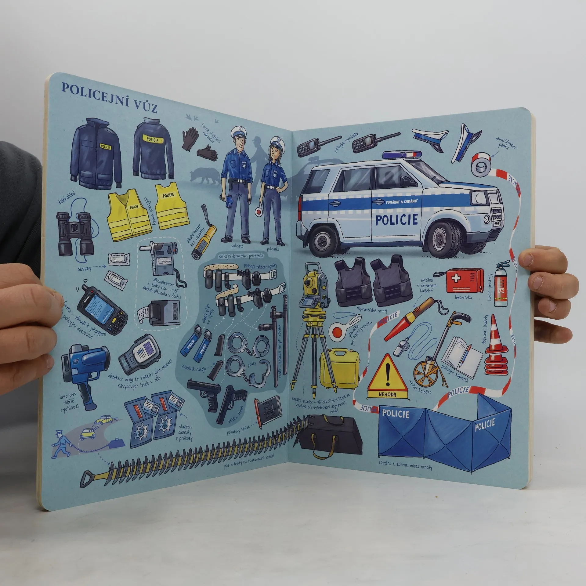 Co s sebou vozí k zásahu hasiči? Bez čeho se neobejde policejní hlídka?Zamysleli jste se někdy nad tím, co všechno se skrývá v různých dopravních prostředcích, kam běžně nemáme možnost nahlédnout? Tato knížka zodpoví i ty nejvšetečnější otázky — třeba kolik litrů vody převáží hasičský vůz, k čemu slouží lavinový batoh a pomocí čeho se dá zastavit podezřelé auto. Celkem čtrnáct speciálních „vozidel“ odhalí svá tajemství. Malí hledači ocení detailní ilustrace, nad kterými mohou strávit hodiny a hodiny, a přesto budou objevovat stále nové věci. Realistické ztvárnění jistě zaujme i mnohem starší nadšence do aut.Pro děti od dvou let.