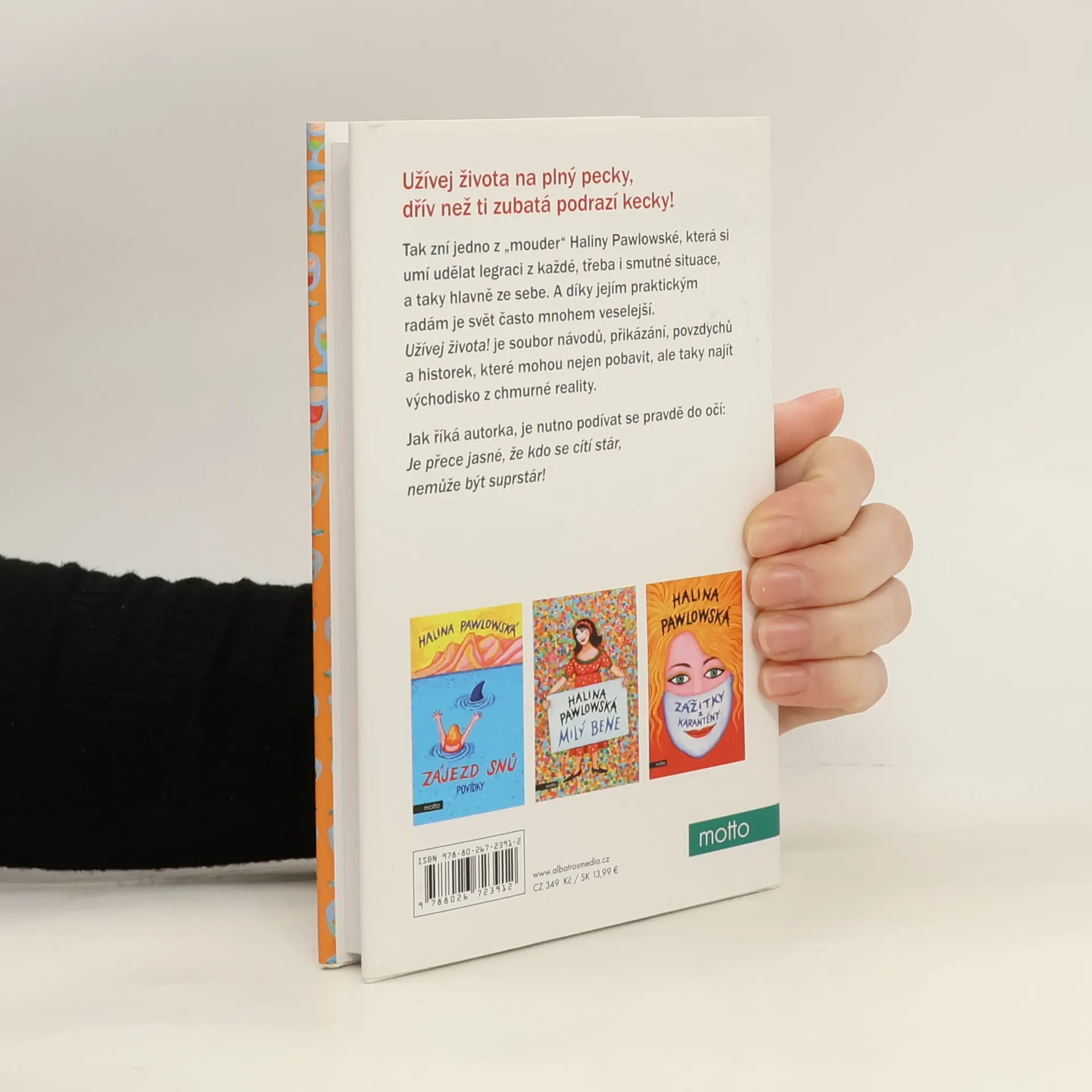 Užívej života na plný pecky, dřív než ti zubatá podrazí kecky!Tak zní jedno z pořekadel Haliny Pawlowské, která si umí udělat legraci z každé, třeba i smutné situace, a taky hlavně ze sebe. A díky jejím praktickým radám je svět často mnohem veselejší. Užívej života! je soubor návodů, přikázání, povzdychů a historek, které mohou nejen pobavit, ale taky najít východisko z chmurné reality. Jak říká autorka, je nutno podívat se pravdě do očí: Je přece jasné, že kdo je stár, nemůže být suprstár!