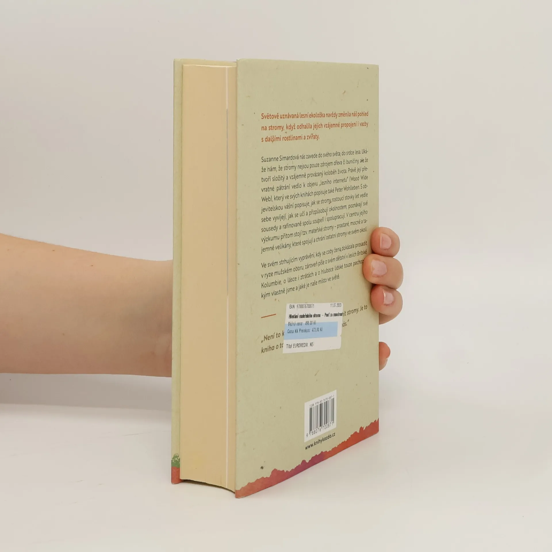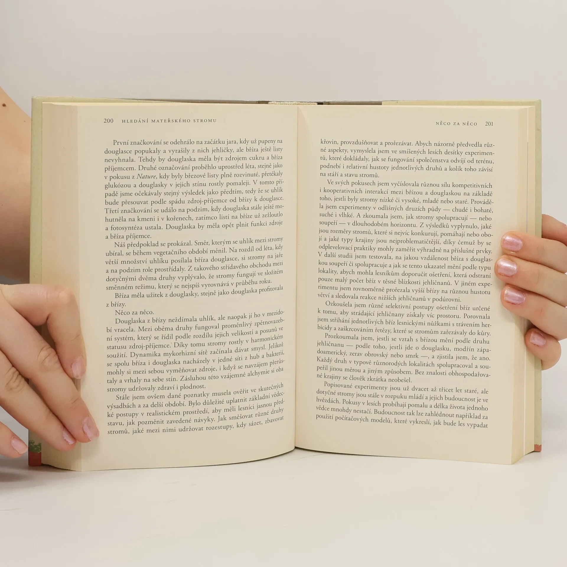 Světově uznávaná lesní ekoložka Suzanne Simardová navždy změnila náš pohled na stromy, když odhalila jejich vzájemné propojení i vazby s dalšími rostlinami a zvířaty.Ve svém strhujícím vyprávění, kdy se coby žena dokázala prosadit v ryze mužském oboru, zároveň píše o svém dětství v lesích Britské Kolumbie, o lásce i ztrátách a o hluboce lidské touze pochopit, kým vlastně jsme a jaké je naše místo ve světě.„Není to kniha o tom, jak můžeme zachránit stromy. Je to kniha o tom, jak stromy můžou zachránit nás.“Suzanne Simardová nás zavede do svého světa, do srdce lesa. Ukáže nám, že stromy nejsou pouze zdrojem dřeva či buničiny, ale že tvoří složitý a vzájemně provázaný koloběh života. Právě její převratné pátrání vedlo k objevu „lesního internetu“ (Wood Wide Web), který ve svých knihách popisuje také Peter Wohlleben. S objevitelskou vášní popisuje, jak se stromy rostoucí stovky let vedle sebe vyvíjejí, jak se učí a přizpůsobují okolnostem, poznávají své sousedy a rafinovaně spolu soupeří i spolupracují. V centru jejího výzkumu přitom stojí tzv. mateřské stromy – prastaré, mocné a tajemné velikány, které spojují a chrání ostatní stromy ve svém okolí.