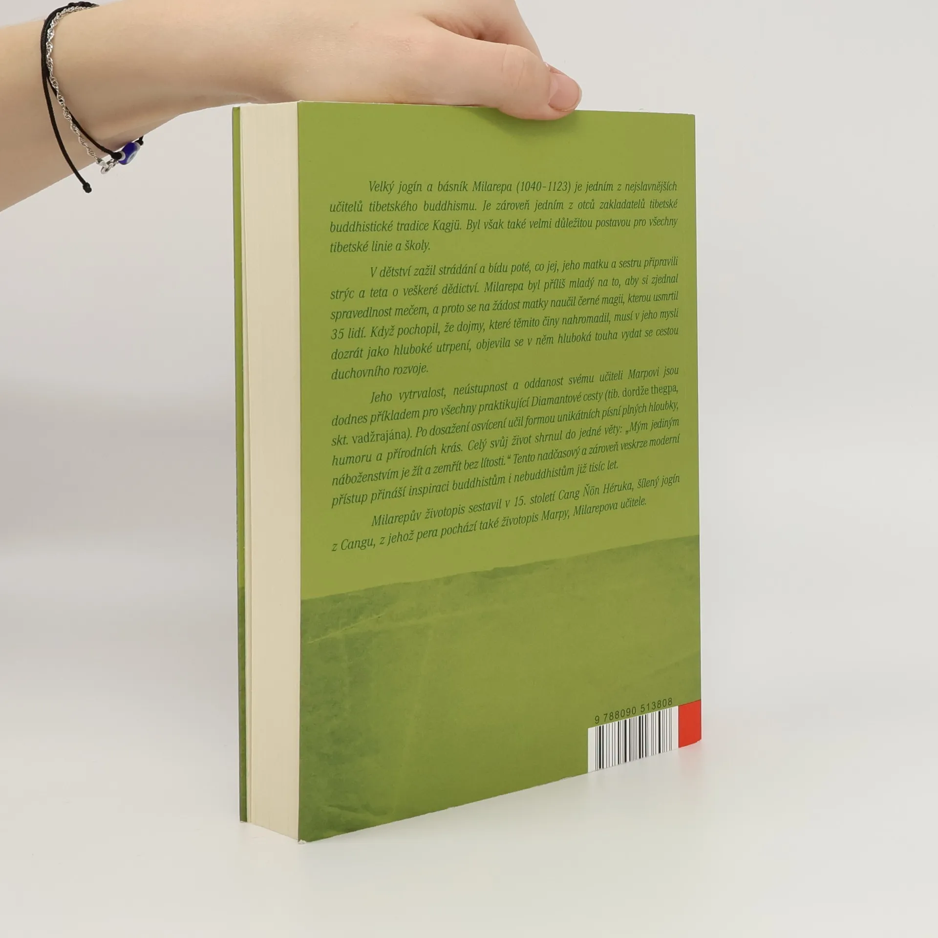 Velký jogín a básník Milarepa (1040–1123) je jedním z nejslavnějších učitelů tibetského buddhismu. Je zároveň jedním z otců zakladatelů tibetské buddhistické tradice Kagjü. Byl však také velmi důležitou postavou pro všechny tibetské linie a školy. V dětství zažil strádání a bídu poté, co jej, jeho matku a sestru připravili strýc a teta o veškeré dědictví. Milarepa byl příliš mladý na to, aby si zjednal spravedlnost mečem, a proto se na žádost matky naučil černé magii, kterou usmrtil 35 lidí. Když pochopil, že dojmy, které těmito činy nahromadil, musí v jeho mysli dozrát jako hluboké utrpení, objevila se v něm hluboká touha vydat se cestou duchovního rozvoje. Jeho vytrvalost, neústupnost a oddanost svému učiteli Marpovi jsou dodnes příkladem pro všechny praktikující Diamantové cesty (tib. dordže thegpa, skt. vadžrajána). Po dosažení osvícení učil formou unikátních písní plných hloubky, humoru a přírodních krás. Celý svůj život shrnul do jedné věty: „Mým jediným náboženstvím je žít a zemřít bez lítosti.“ Tento nadčasový a zároveň veskrze moderní přístup přináší inspiraci buddhistům i nebuddhistům již tisíc let.