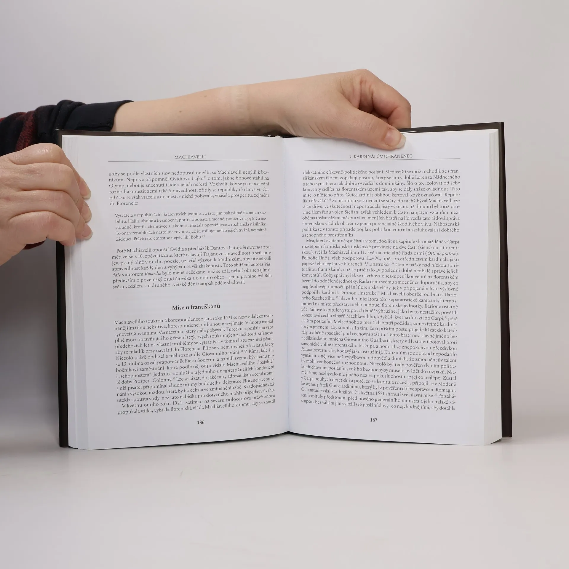 Niccolo Machiavelli (1469–1527) byl autorem nejen proslulého traktátu Vladař, který obsahuje politické úvahy odhalující a popisující mechanismy fungování moci, a na který navázala díla dalších teoretiků moci. Přestože je vnímán jako duchovní otec tzv. machiavelismu, tj. cynické politiky prováděné bez ohledu na použité prostředky v zájmu vyššího cíle, byl osobností mnohem komplexnější. Z bohaté soukromé korespondence vystupuje diplomat oddaný florentské republice, jíž celý život sloužil, i veřejnému blahu, vnímající pozorně bouřlivé události v Itálii i v ostatní Evropě. Emeritní profesorka na pařížské Sorbonně Marina Marietti, autorka četných studií o italské středověké a renesanční literatuře, podává ve své práci obraz Machiavelliho na základě studia jeho díla (dopisů, básní, historických pojednání i komedií). Vidí ho jako zbožného člověka a vlastence, myslitele a bouřlivého vizionáře, který dokázal zachytit svoji dobu s neobvyklou politickou inteligencí a notnou dávkou předvídavosti.