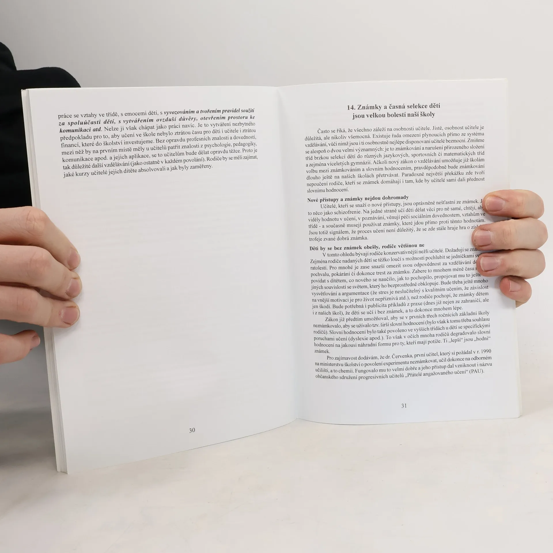„O škodlivosti některých zaběhaných představ o učení, škole a výchově a cestách, jak je překonat.“ Autorka v jednotlivých kapitolách nastiňuje nedostatky klasického školství. Věnuje se např. přirozenosti učení, známkování, osnovám a učebnicím, spolupráci dětí a studentů, roli učitele a zahrnutí dětí a studentů do rozhodování.Autorka, psycholožka a propagátorka nových, u nás zatím netradičních způsobů vzdělávání a výchovy, kritizuje v knize tradiční školství, které svými přístupy poškozuje děti. Popisuje nějčastější mýty a mylné představy o vzdělávání školních dětí a alespoň ve stručných náznacích nastiňuje alternativy k tradičním způsobům výuky. Vyžadování bezmezné poslušnosti, manipulace s dětmi, jejich zbytečné stresování, učení v podobě mechanické reprodukce pasáží z učebnic - to vše spolu s dalšími negativy brání efektivnímu a přirozenému učení. Děti se neučí svobodně, ale jsou donucovány systémem odměn a trestů, především známkovacím systémem. Proto je třeba změnit nefunkční pedagogické přístupy, vybudovat kvalitní vztahy mezi školou a rodinou, zajistit vzdělávání učitelů, ukázat pedagogům i veřejnosti, že to jde jinak. Kniha je sestavena z článků, které v letech 1998-99 vycházely v Lidových novinách.