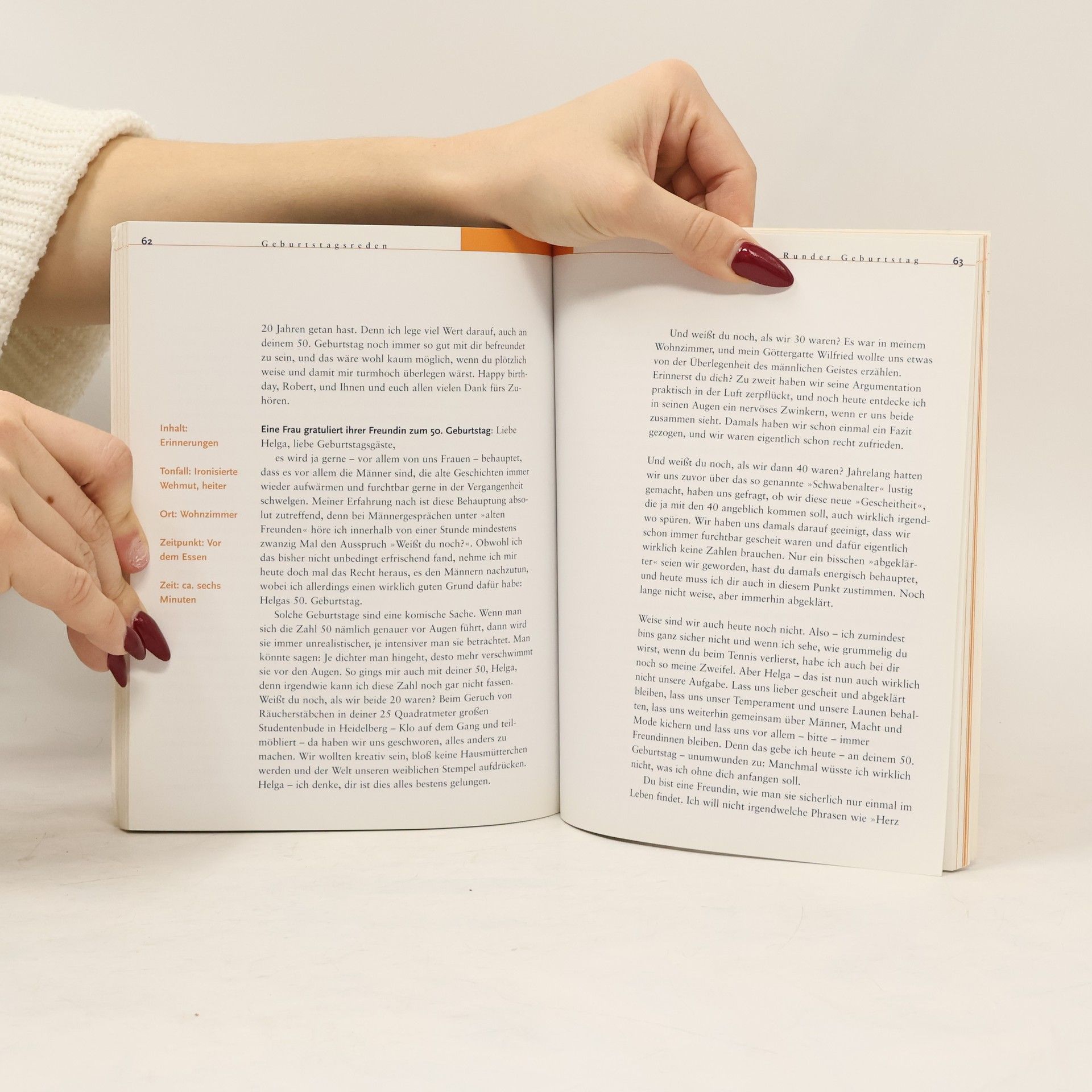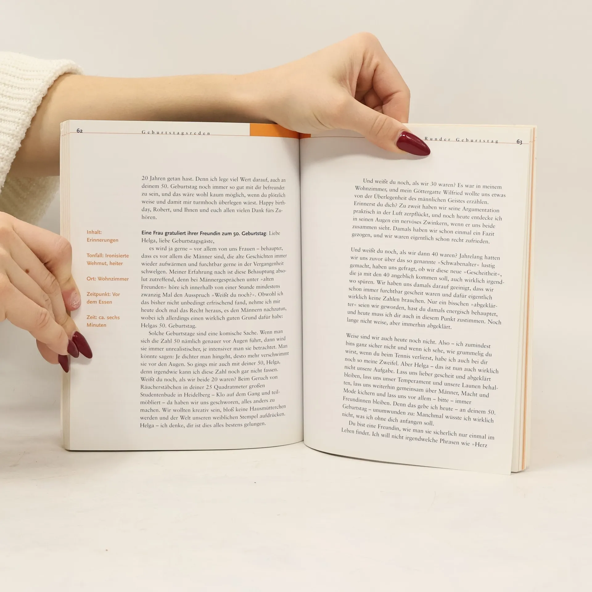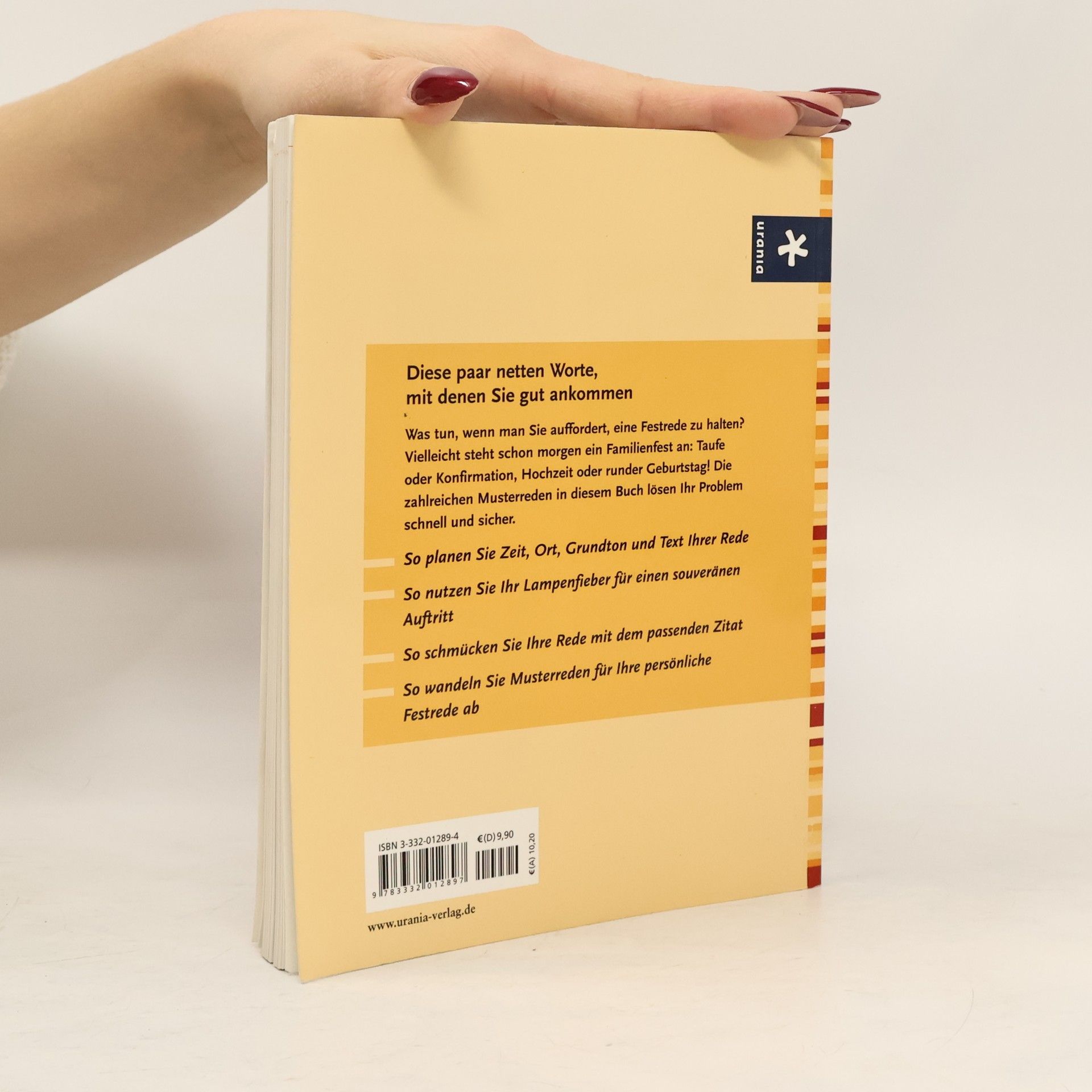 Das Buch bietet Männern und Frauen Anleitungen für gelungene Reden zu verschiedenen Anlässen wie Geburt, Konfirmation, Hochzeit und mehr. Praktische Tipps und Musterreden helfen, das Passende zu sagen.