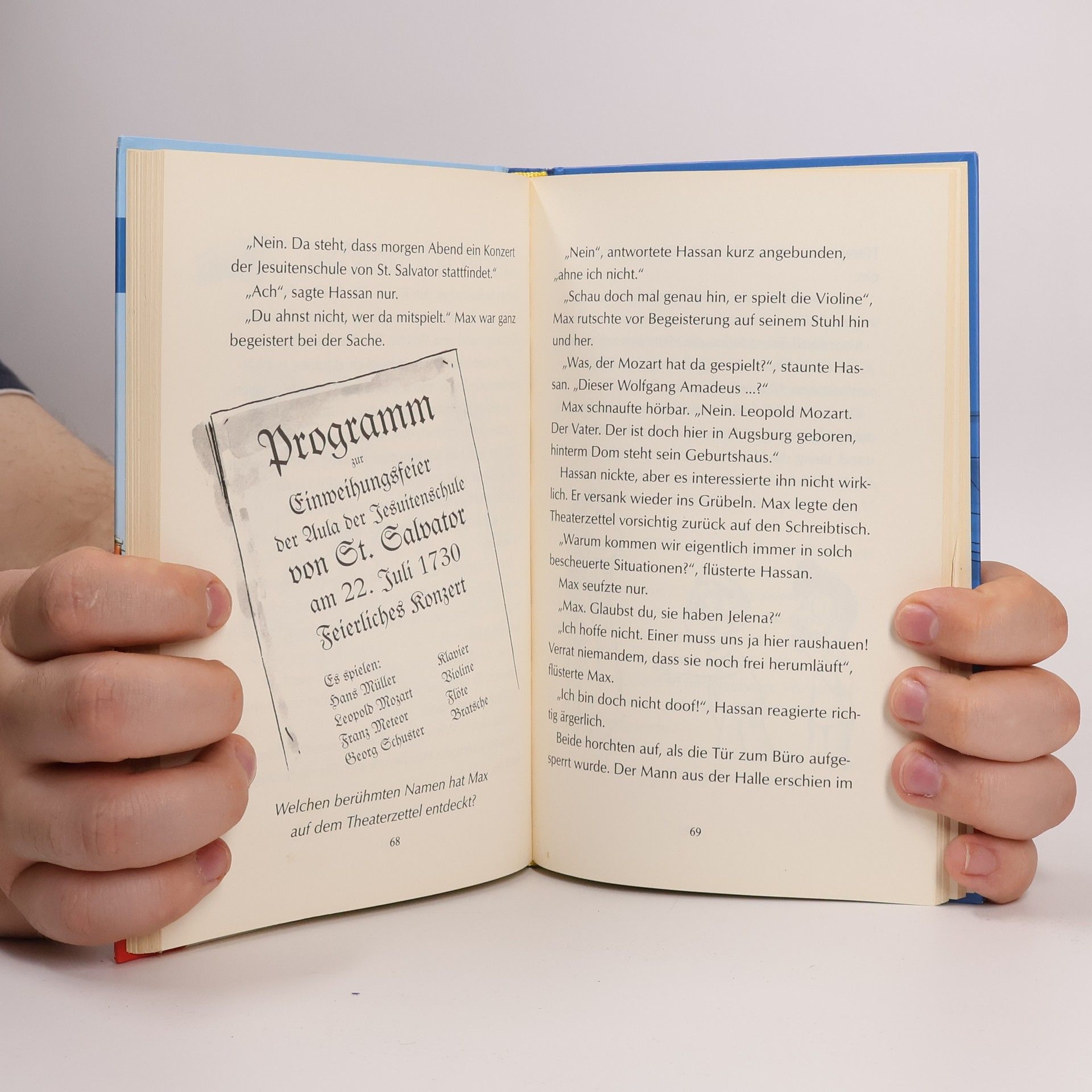 Hassan, Jelena und Max stehen vor ihrem bisher größten Abenteuer im Textilmuseum. Ein Spion führt sie in eine Augsburger Kattundruckerei des 18. Jahrhunderts, wo Geheimnisse und Intrigen lauern. Gemeinsam müssen sie das Rätsel um die neue Drucktechnik und die geheimnisvollen Figuren lösen.