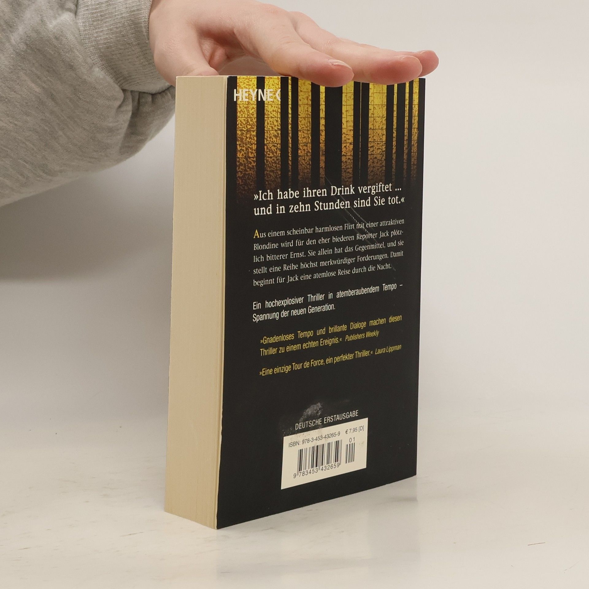 Ein hochexplosiver Thriller in atemberaubendem Tempo – Spannung der neuen Generation „Ich habe Ihren Drink vergiftet … und in zehn Stunden sind Sie tot.“ Aus einem scheinbar harmlosen Flirt mit einer attraktiven Blondine wird für den eher biederen Reporter Jack plötzlich bitterer Ernst. Es beginnt eine atemlose Reise durch die Nacht.