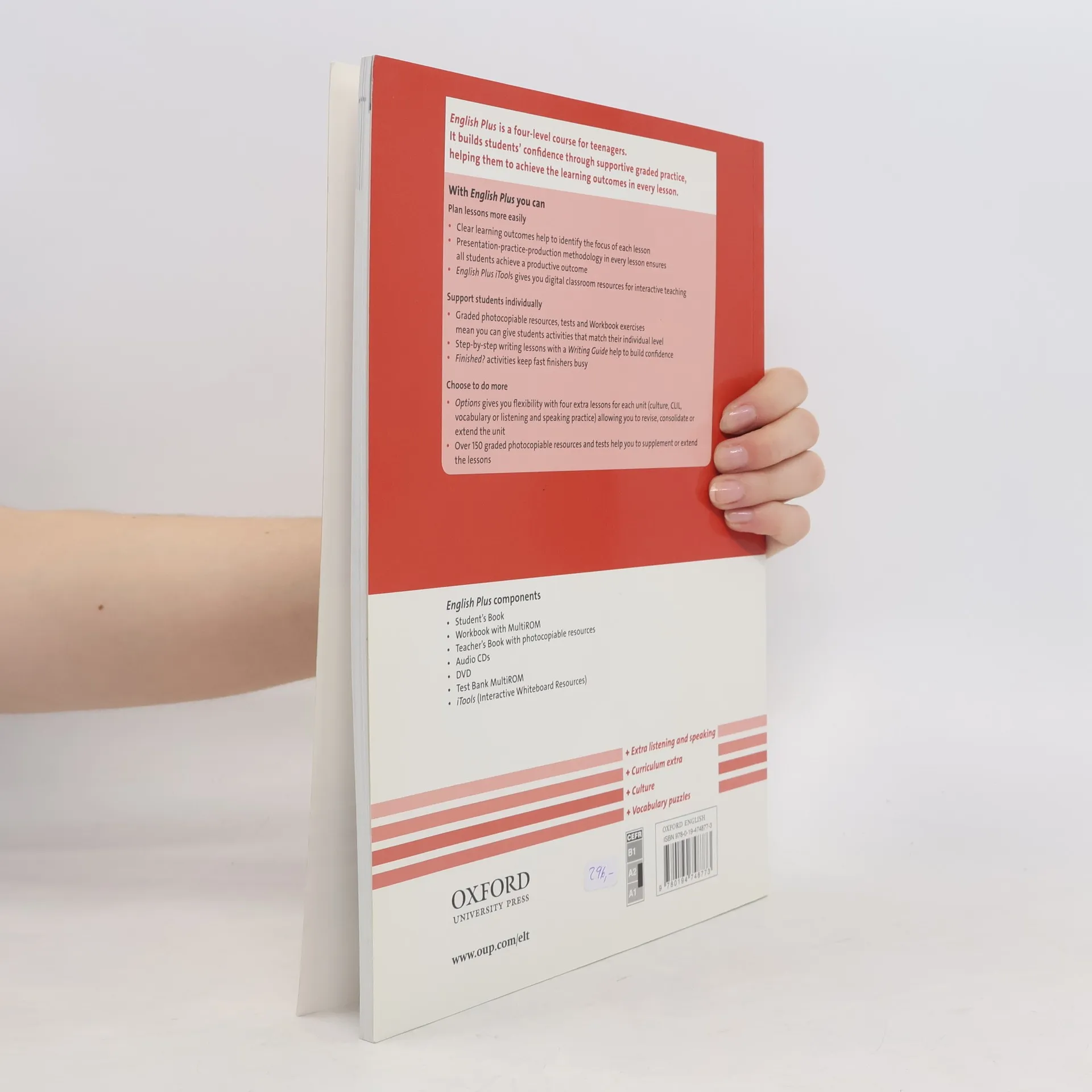 Six pages of additional practice for each Student's Book unit, including exercises for vocabulary, grammar, reading and writing; all at three levels of difficulty Two-page progress review after every unit with self-assessments and I can... statements Reference section which includes a Language focus reference, a pronunciation bank, an alphabetical Wordlist with illustrations and a phonetic chart, an Expression bank, and an Irregular verbs list Answer Key which can be found on the English Plus Teacher's site and on iTools MultiROM included with Workbook for a complete interactive self-study resource