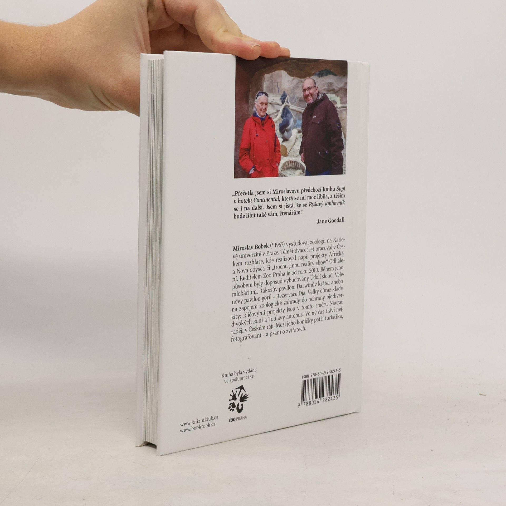 Kniha, kterou doporučuje světoznámá primatoložka a ochránkyně přírody Jane Goodall:„Přečetla jsem si Miroslavovu předchozí knihu Supi v hotelu Continental, která se mi moc líbila, a těším se i na tuhle. Jsem si zcela jista, že se Ryšavý knihovník bude líbit také vám, jeho čtenářům.“ Neobyčejná zvířata, neobyčejní lidé, neobyčejné místo… to je Zoo Praha. Nahlédněte prostřednictvím zápisků ředitele Miroslava Bobka do zákulisí jedné z nejlepších zoologických zahrad světa. Dozvíte se spoustu zajímavostí z její současnosti i historie a podíváte se nejen do areálu v Troji, ale také vycestujete za gorilami do Afriky a za jinými vzácnými zvířaty do dalších částí světa. Seznámíte se s ochranářskými projekty, jež organizuje či podporuje pražská zoo, a odhalíte záhadu podivného tvora, který měl vyhynout již před miliony let. Poutavé vyprávění doplňují jedinečné fotografie.