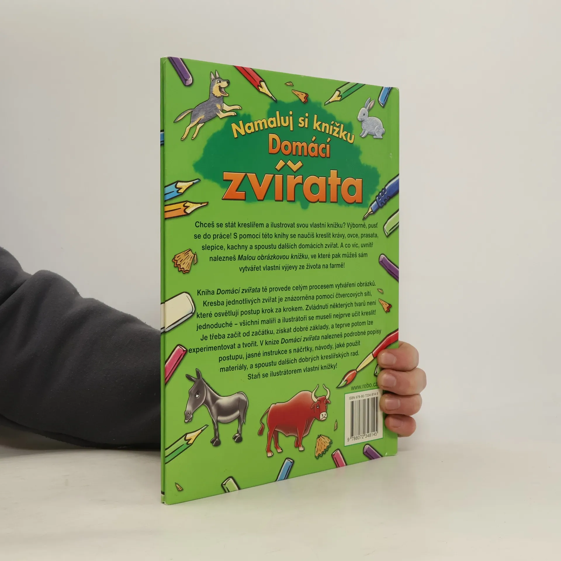 Chceš se stát kreslířem a ilustrovat svou vlastní knížku? Výborně, pusť se do práce! S pomocí této knihy se naučíš kreslit krávy, ovce, prasata, slepice, kachny a spoustu dalších domácích zvířat. A co víc, uvnitř nalezneš Malou obrázkovou knížku, ve které pak můžeš sám vytvářet vlastní výjevy ze života na farmě!