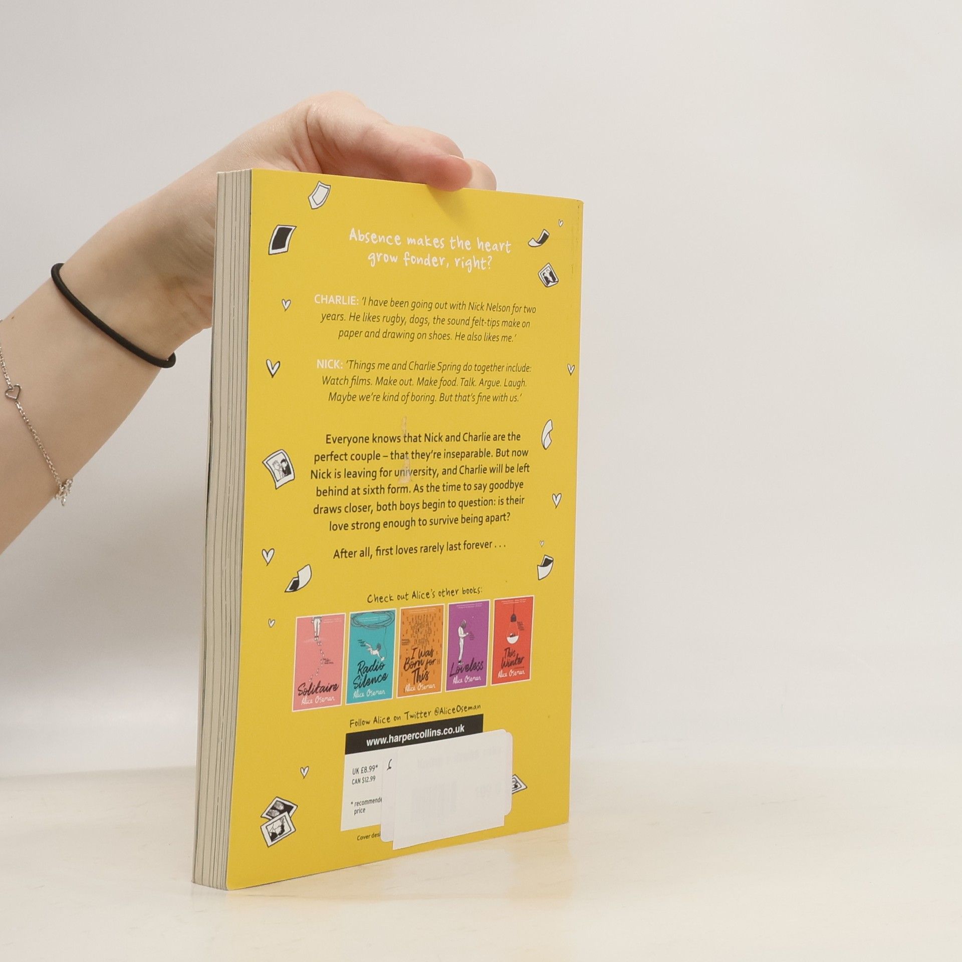 A SUNDAY TIMES TOP 5 CHILDREN'S BESTSELLER A short novella based on the beloved characters from Alice Oseman's acclaimed debut novel Solitaire and graphic novel series Heartstopper - now a major Netflix series. From the author of the 2021 YA Book Prize winning Loveless. Absence makes the heart grow fonder, right? CHARLIE: "I have been going out with Nick Nelson for two years. He likes rugby, Formula 1, dogs, the Marvel universe, the sound felt-tips make on paper, rain and drawing on shoes. He also likes me." NICK: "Things me and Charlie Spring do together include: Watch films. Sit in the same room on different laptops. Text each other from different rooms. Make out. Make food. Make drinks. Get drunk. Talk. Argue. Laugh. Maybe we're kind of boring. But that's fine with us." Everyone knows that Nick and Charlie are the perfect couple - that they're inseparable. But now Nick is leaving for university, and Charlie will be left behind at Sixth Form. Everyone's asking if they're staying together, which is a stupid question - they're 'Nick and Charlie' for God's sake! But as the time to say goodbye gets inevitably closer, both Nick and Charlie question whether their love is strong enough to survive being apart. Or are they delaying the inevitable? Because everyone knows that first loves rarely last forever...