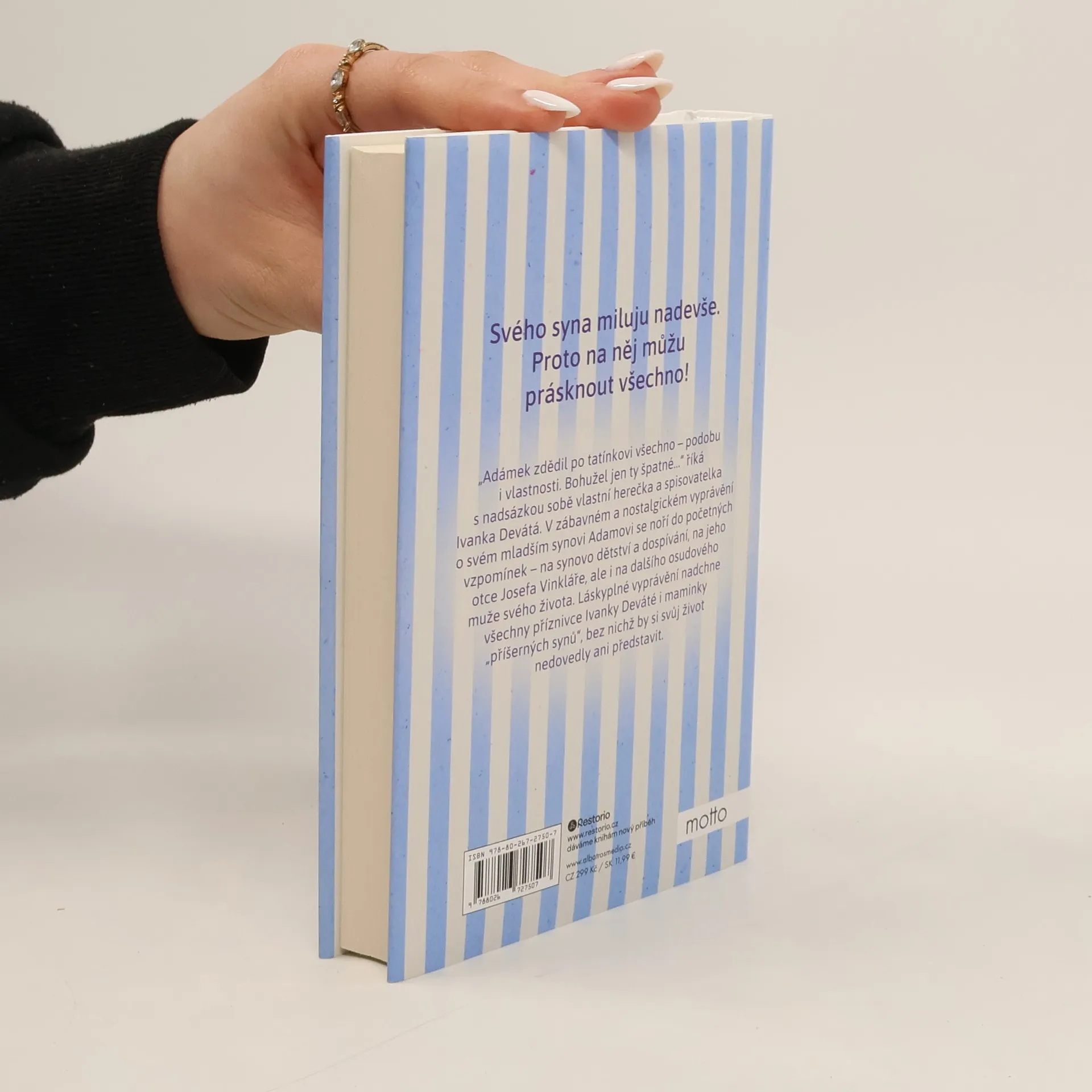 Humorné i nostalgické vyprávění české herečky, ve kterém s jemnou ironií sobě vlastní vzpomíná na výchovu mladšího synka. "Adámek zdědil po tatínkovi všechno - podobu i vlastnosti. Bohužel jen ty špatné," říká s nadsázkou sobě vlastní herečka a spisovatelka Ivanka Devátá. V zábavném a nostalgickém vyprávění o svém mladším synovi Adamovi se noří do početných vzpomínek - na synovo dětství a dospívání, na jeho otce Josefa Vinkláře, ale i na dalšího osudového muže svého života. Nakladatelská anotace.