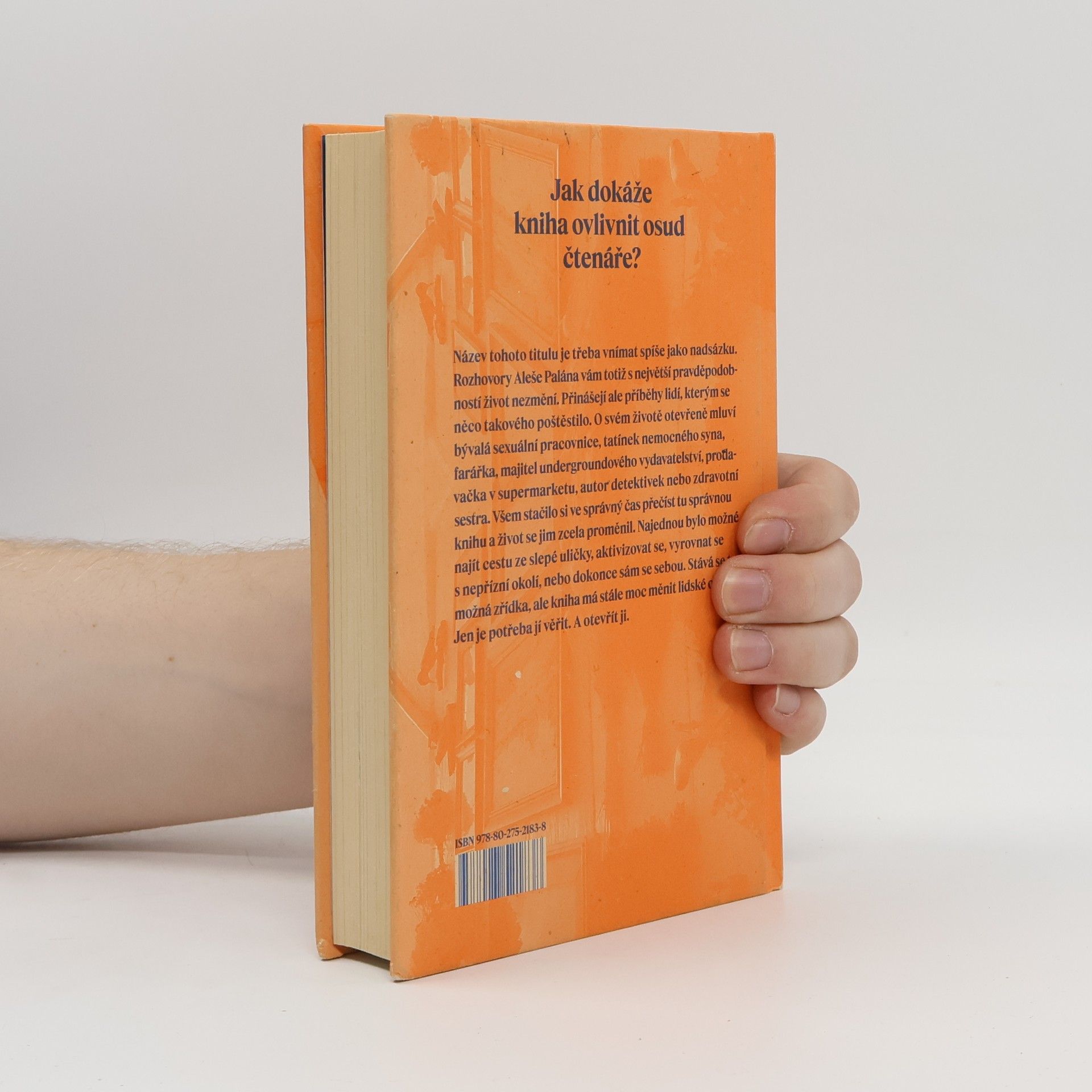 Jak literární dílo dokáže ovlivnit osud čtenáře? Název této knihy je třeba vnímat spíše jako nadsázku. Rozhovory Aleše Palána vám totiž s největší pravděpodobností život nezmění. Přinášejí ale příběhy lidí, kterým se něco takového poštěstilo. O svém životě otevřeněmluví bývalá sexuální pracovnice, tatínek nemocného syna, farářka, majitel undergroundového vydavatelství, prodavačka v supermarketu, autor detektivek nebo zdravotní sestra. Všem stačilo si ve správný čas přečíst tu správnou knihu a život se jim zcela proměnil. Najednou bylo možné najít cestu ze slepé uličky, aktivizovat se, vyrovnat se s nepřízní okolí, nebo dokonce sám se sebou. Stává se to možná zřídka, ale kniha má stále moc měnit lidské osudy. Jen je potřeba jí věřit. A otevřít ji.