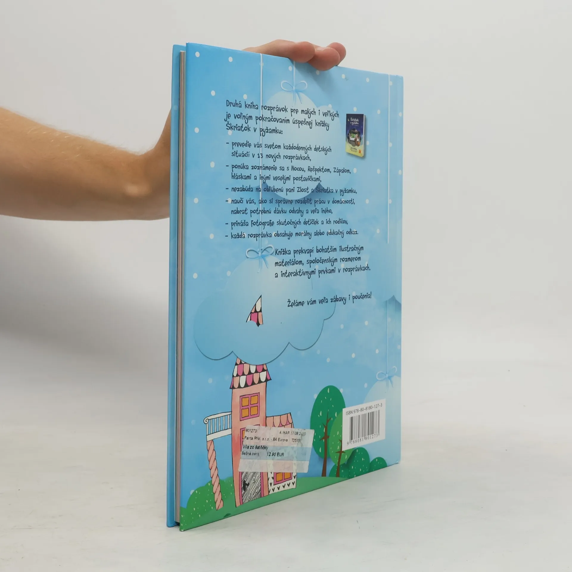 Pani Zlosť sa vracia!Druhá knižka rozprávok pre malých aj veľkých je voľným pokračovaním úspešnej knižky Škriatok v pyžamku. Prevedie vás svetom každodenných detských situácií v 13 nových rozprávkach. Hlavní hrdinovia sa popasujú so zápalom v ušku, s trénovaním výslovnosti hlásky R, s obhrýzaním nechtíkov, s nechuťou podeliť sa o hojdačku s inými deťmi, s nočným vybiehaním z postieľky a s ďalšími detskými trampotami.Knižka je ideálnym návodom pre rodičov na zvládnutie výchovných problémov s vtipom a ľahkosťou. Ponúka zoznámenie sa s Nocou, Rešpektom, bacilmi Helom a Monelou a inými veselými postavičkami. Nezabúda ani na obľúbenú pani Zlosť a Škriatka v pyžamku. Knižka prekvapí bohatším ilustračným materiálom, spoločenským rozmerom a interaktívnymi prvkami v rozprávkach.Knižka je vhodná pre čitateľov od 3 rokov.