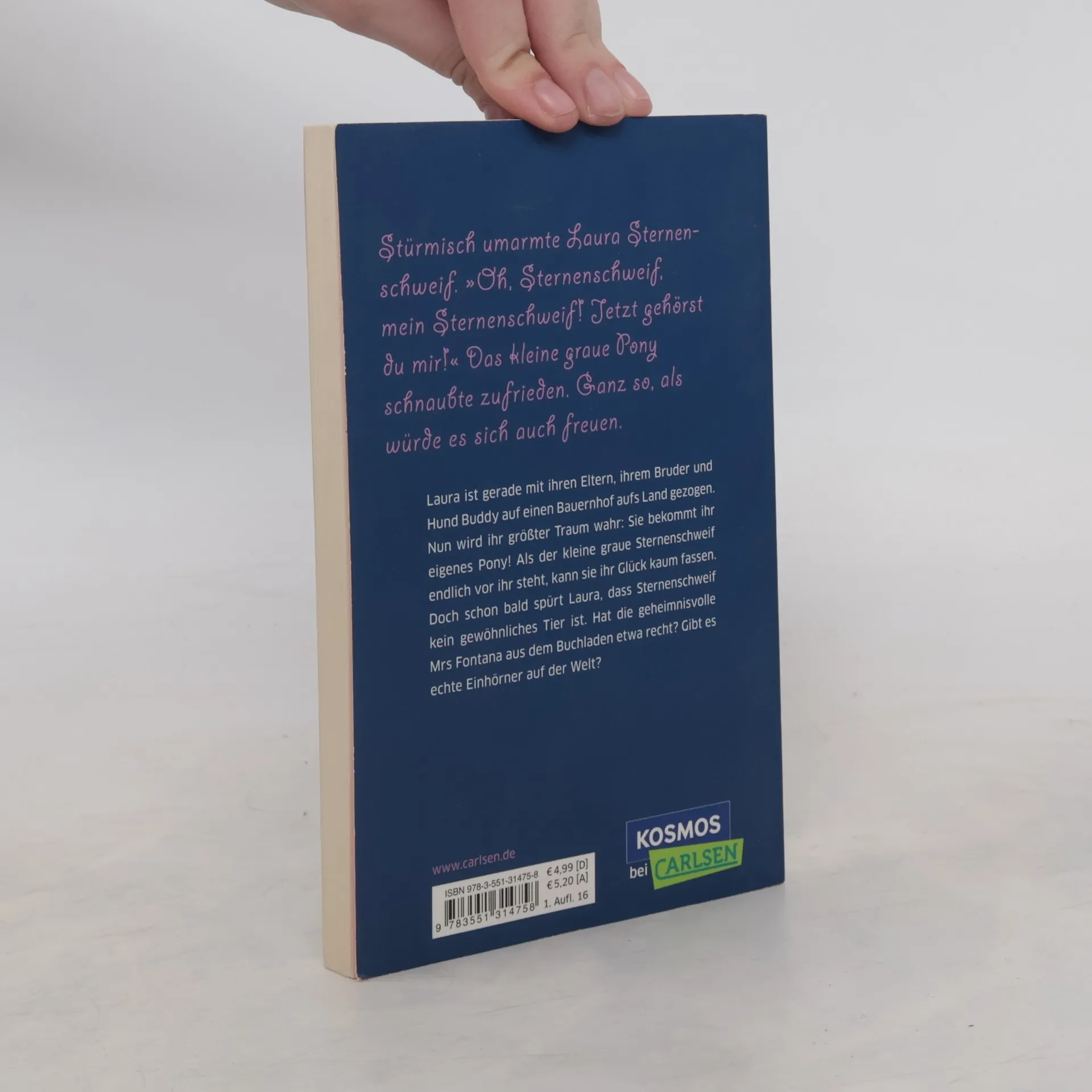 Das erste Abenteuer von Laura und Sternenschweif! Laura ist gerade mit ihren Eltern, ihrem Bruder und Hund Buddy auf einen Bauernhof aufs Land gezogen. Nun wird ihr größter Traum wahr: Sie bekommt ihr eigenes Pony! Als der kleine graue Sternenschweif endlich vor ihr steht, kann sie ihr Glück kaum fassen. Doch schon bald spürt Laura, dass Sternenschweif kein gewöhnliches Tier ist. Hat die geheimnisvolle Mrs Fontana aus dem Buchladen etwa Recht? Gibt es echte Einhörner auf der Welt?
