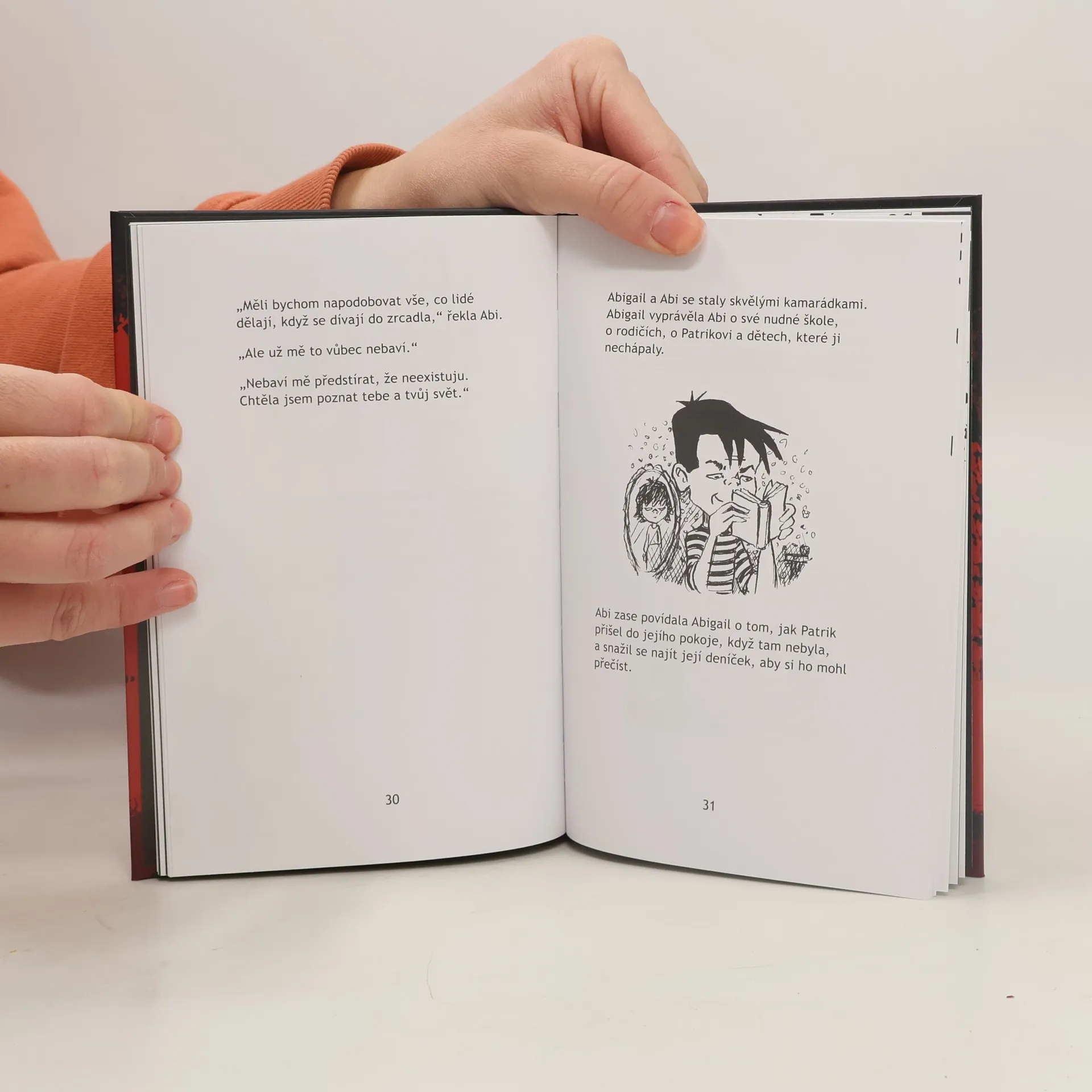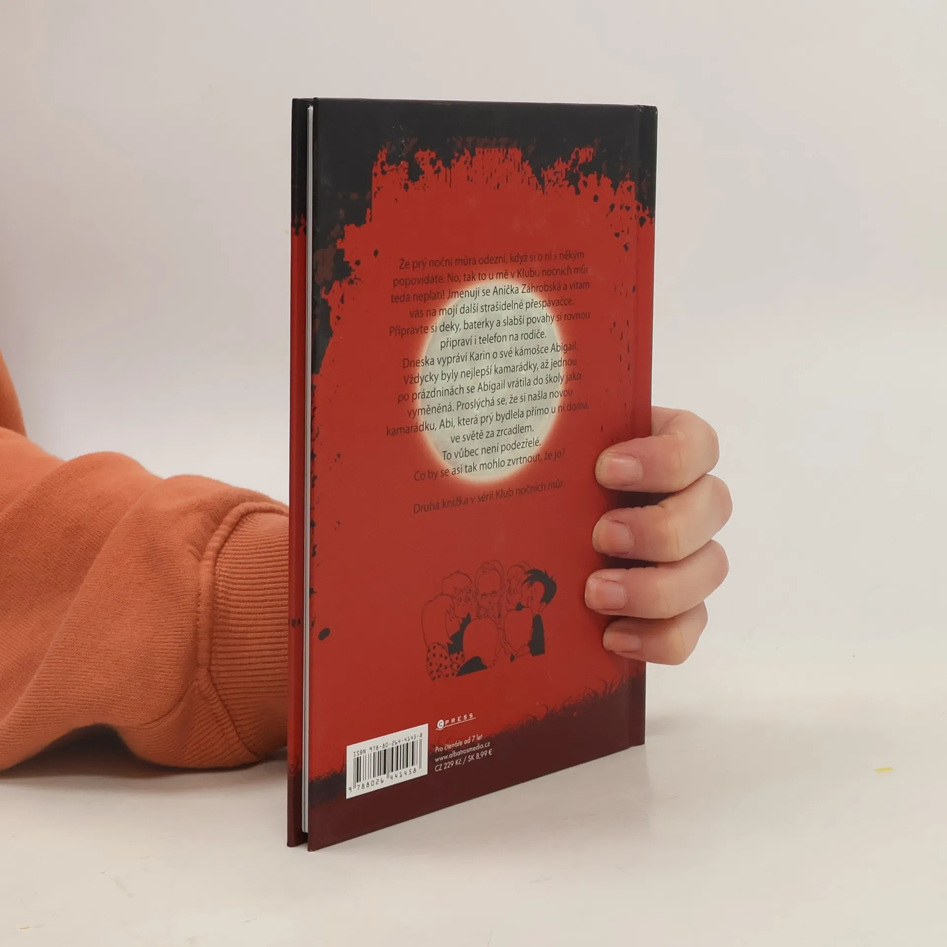 Že prý noční můra odezní, když si o ní s někým popovídáte. No, tak to u mě v Klubu nočních můr teda neplatí! Jmenuji se Anička Záhrobská a vítám vás na mojí další strašidelné přespávačce. Připravte si deky, baterky a slabší povahy si rovnou připraví i telefon na rodiče. Dneska vypráví Karin o své kámošce Abigail. Vždycky byly nejlepší kamarádky, až jednou po prázdninách se Abigail vrátila do školy jako vyměněná. Proslýchá se, že si našla novou kamarádku, Abi, která prý bydlela přímo u ní doma, ve světě za zrcadlem. To vůbec není podezřelé. Co by se asi tak mohlo zvrtnout, že jo? Druhá knížka v sérii Klub nočních můr.