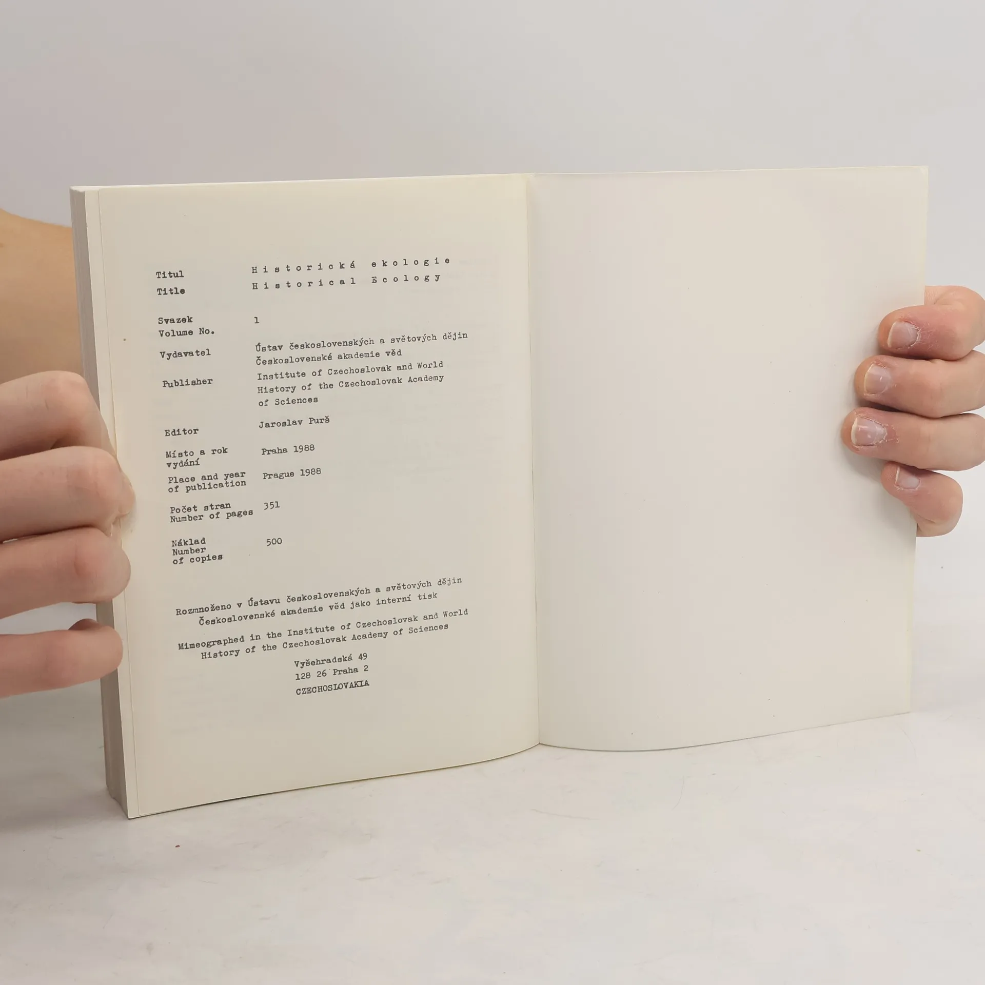 Historická ekologie. Historical Ecology 1, Auteurscollectief