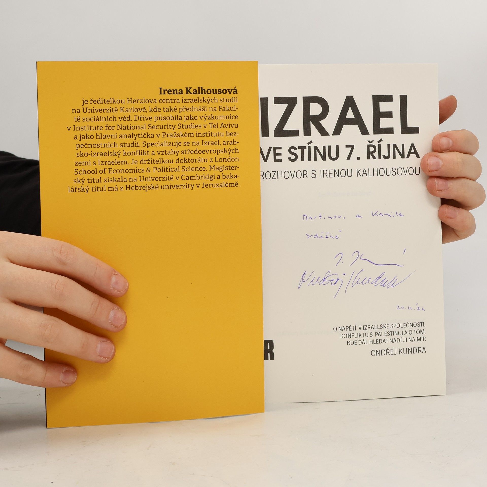 Není mnoho zemí na světě, které mají tak blízký vztah k Izraeli jako Česko. Válku o svoji nezávislost vybojoval i díky dodávce zbraní odsud, to vytvořilo pevnou vazbu. Kolem Izraele a také Palestiny je tu ale také hodně mýtů a nepochopení. Přední expertka na Izrael Irena Kalhousová v knižním rozhovoru řadu z nich demaskuje, zasazuje věci do zajímavých souvislostí a pomáhá pochopit, kým Izrael skutečně je. Kniha vychází rok po šokujícím útoku teroristické organizace Hamás na Izrael, který ho změnil jako žádná jiná válka před tím.
