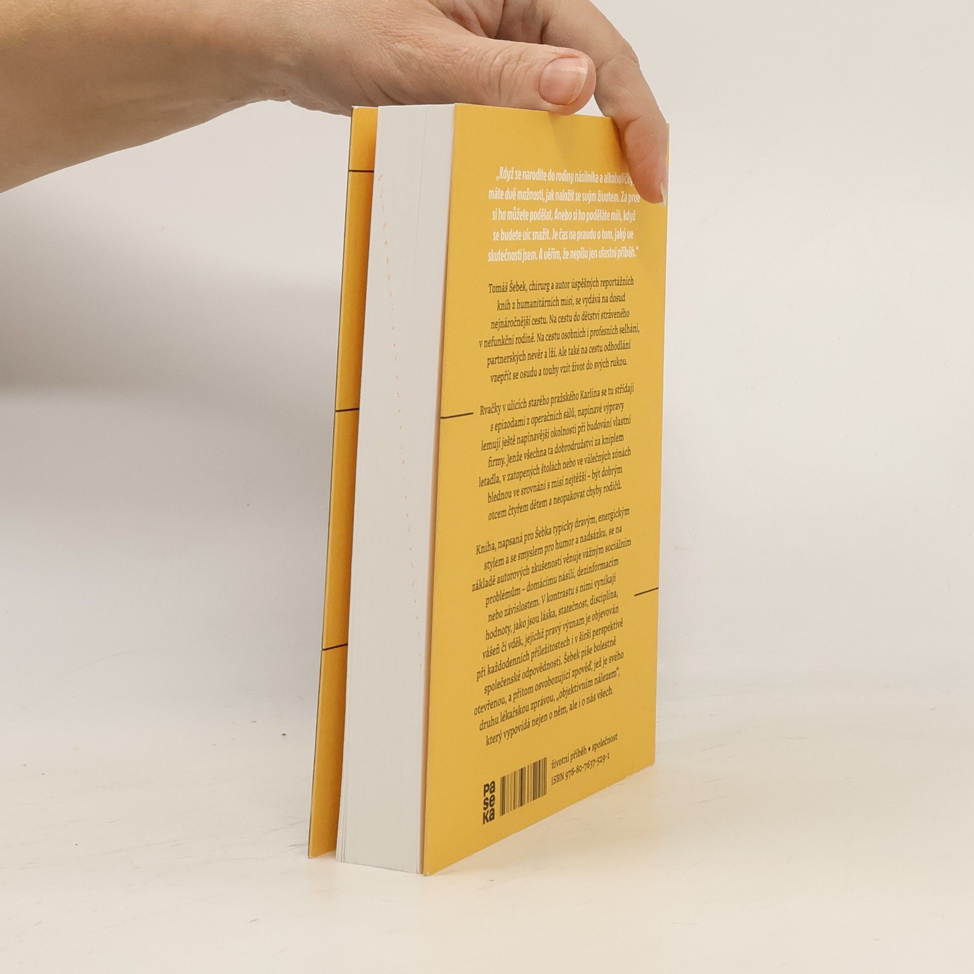 Tomáš Šebek, chirurg a autor úspěšných reportážních knih z humanitárních misí, se vydává na dosud nejnáročnější cestu. Na cestu do dětství stráveného v nefunkční rodině. Na cestu osobních i profesních selhání, partnerských nevěr a lží. Ale také na cestu odhodlání vzepřít se osudu a touhy vzít život do svých rukou. Rvačky v ulicích starého pražského Karlína se tu střídají s epizodami z operačních sálů, napínavé výpravy lemují ještě napínavější okolnosti při budování vlastní firmy. Jenže všechna ta dobrodružství za kniplem letadla, v zatopených štolách nebo ve válečných zónách blednou ve srovnání s misí nejtěžší – být dobrým otcem čtyřem dětem a neopakovat chyby rodičů. Kniha, napsaná pro Šebka typicky dravým, energickým stylem a se smyslem pro humor a nadsázku, se na základě autorových zkušeností věnuje vážným sociálním problémům – domácímu násilí, dezinformacím nebo závislostem. V kontrastu s nimi vynikají hodnoty, jako jsou láska, statečnost, disciplína, vášeň či vděk, jejichž pravý význam je objevován při každodenních příležitostech i v širší perspektivě společenské odpovědnosti. Šebek píše bolestně otevřenou, a přitom osvobozující zpověď, jež je svého druhu lékařskou zprávou, „objektivním nálezem“, který vypovídá nejen o něm, ale i o nás všech.