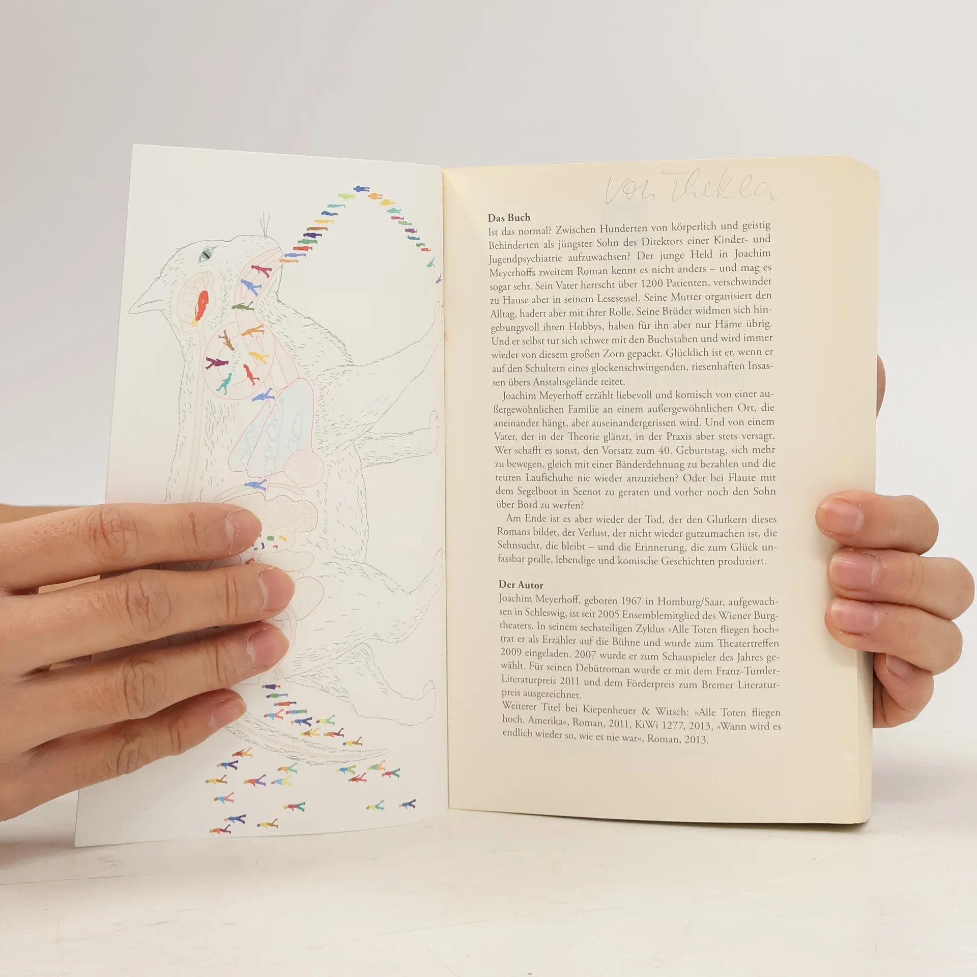 In diesem zweiten Band des Zyklus „Alle Toten fliegen hoch“ von Joachim Meyerhoff wird das Aufwachsen des jungen Helden in einer Kinder- und Jugendpsychiatrie erzählt. Als Sohn des Direktors kennt er ein Leben zwischen Hunderten von körperlich und geistig Behinderten und empfindet sogar Freude daran. Während sein Vater, der die Anstalt mit über 1.200 Patienten leitet, zu Hause in seinem Lesesessel versinkt, kämpft seine Mutter mit ihrer Rolle im Alltag. Die Brüder widmen sich ihren Hobbys und zeigen ihm wenig Zuneigung, während er selbst mit dem Lernen kämpft und von Wut geplagt wird. Glücklich ist er, wenn er auf einem riesenhaften Insassen reitet. Meyerhoff schildert humorvoll und einfühlsam das Leben dieser außergewöhnlichen Familie, die zwar eng verbunden, aber auch auseinandergerissen ist. Der Vater glänzt in der Theorie, versagt jedoch in der Praxis, was zu komischen, aber auch tragischen Situationen führt. So wird ein guter Vorsatz zum 40. Geburtstag mit einer Bänderdehnung bestraft, und beim Segeln gerät er in Seenot, nachdem er seinen Sohn über Bord geworfen hat. Der zentrale Themenkomplex des Romans ist der Tod, der Verlust und die bleibende Sehnsucht. Die Erinnerungen an diese ungewöhnliche Kindheit sind geprägt von lebendigen, komischen Geschichten, die trotz der Traurigkeit des Themas Freude bereiten.