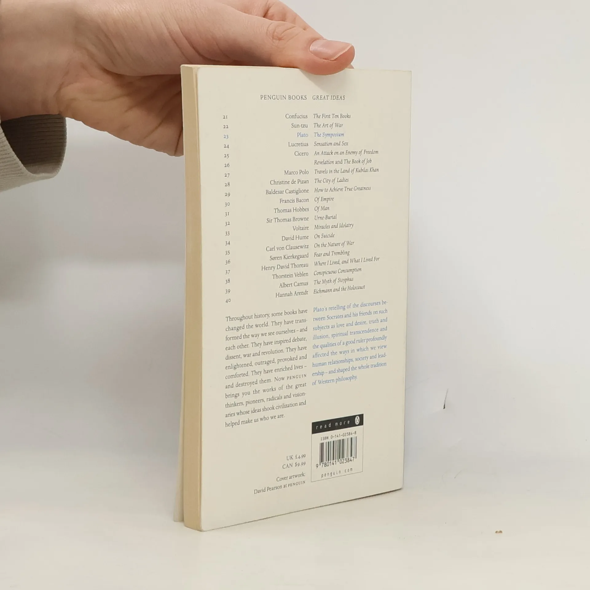 Throughout history, some books have changed the world. They have transformed the way we see ourselves - and each other. They have inspired debate, dissent, war and revolution. They have enlightened, outraged, provoked and comforted. They have enriched lives - and destroyed them. Now Penguin brings you the works of the great thinkers, pioneers, radicals and visionaries whose ideas shook civilization and helped make us who we are. Plato's retelling of the discourses between Socrates and his friends on such subjects as love and desire, truth and illusion, spiritual transcendence and the qualities of a good ruler, profoundly affected the ways in which we view human relationships, society and leadership - and shaped the whole tradition of Western philosophy.
