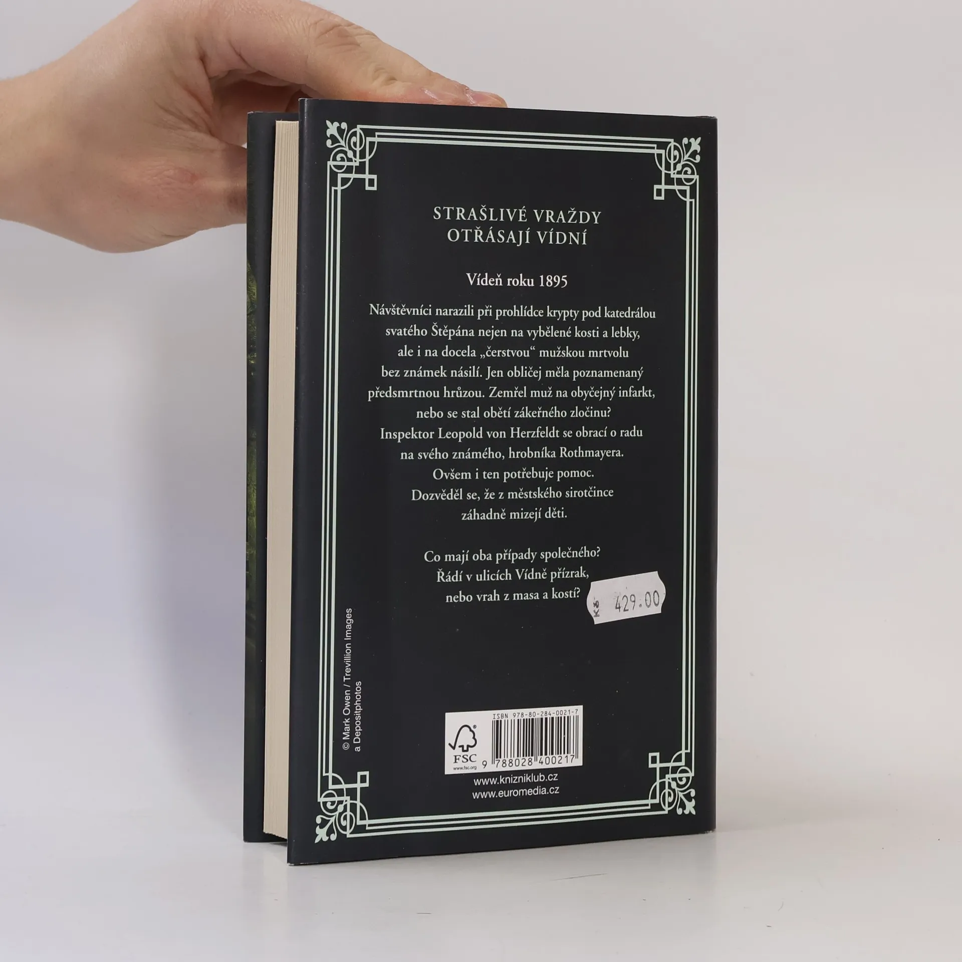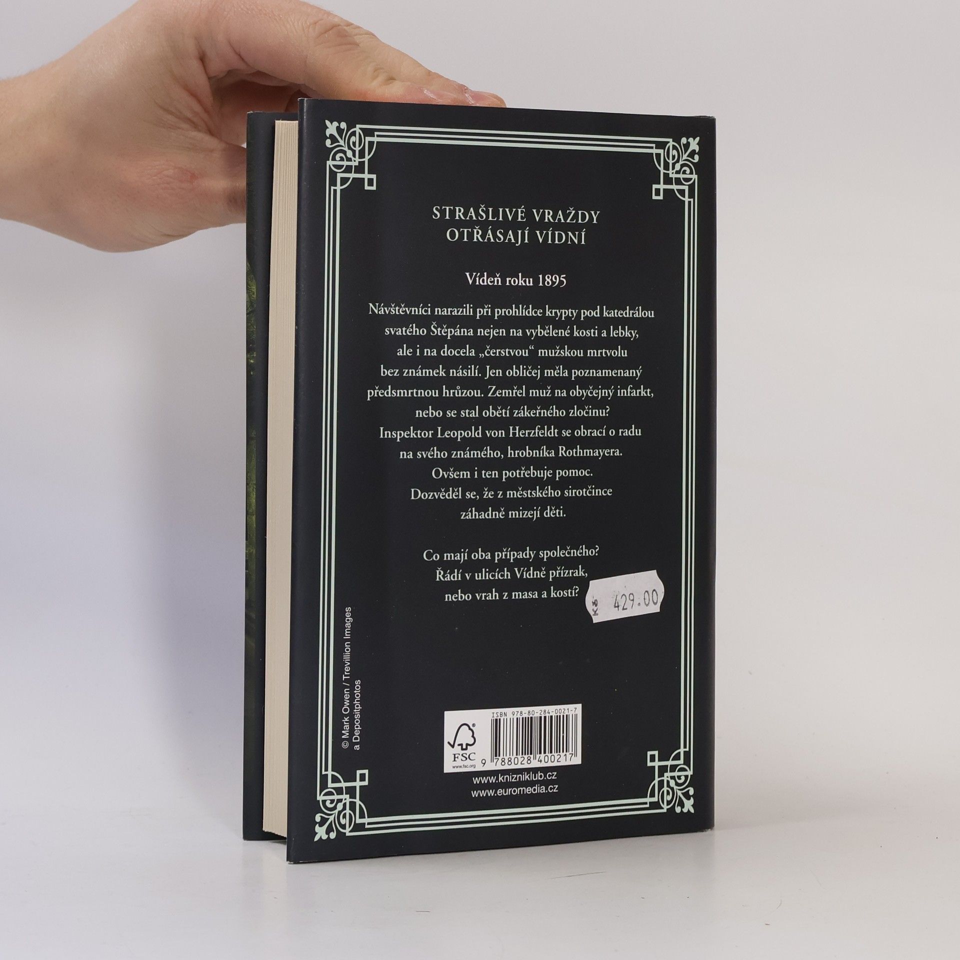 Další kriminální případ ze staré Vídně, v němž inspektor Leopold von Herzfeldt řeší případ tajemné smrti muže nalezeného v kryptě, a k tomu se navíc přidávají záhadná mizení dětí z místního sirotčince. Vídeň roku 1895: Inspektor Leopold von Herzfeldt řeší záhadnou smrt muže v kryptě pod katedrálou svatého Štěpána. Mrtvému nebyl zdánlivě zkřiven vlas na hlavě, jen obličej měl poznamenaný předsmrtnou hrůzou. Zemřel na obyčejný infarkt, nebo se stal obětí zákeřného zločinu? Inspektor se obrací o radu na svého známého hrobníka Rothmayera. Ovšem i ten potřebuje pomoc. Schovanka Anna ho upozornila na děti záhadně mizející z městského sirotčince. Nakladatelská anotace.