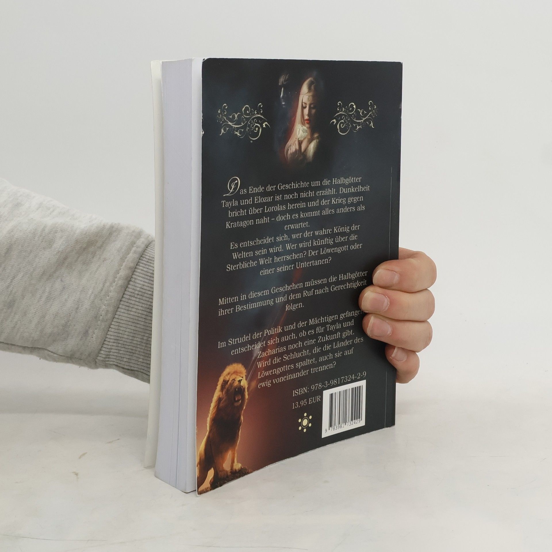 Das Ende der Geschichte um die Halbgötter Tayla und Elozar ist noch nicht erzählt. Dunkelheit bricht über Lorolas herein und der Krieg gegen Kratagon naht – doch es kommt alles anders als erwartet. Es entscheidet sich, wer der wahre König der Welten sein wird. Wer wird künftig über die Sterbliche Welt herrschen? Der Löwengott oder einer seiner Untertanen? Mitten in diesem Geschehen müssen die Halbgötter ihrer Bestimmung und dem Ruf nach Gerechtigkeit folgen. Im Strudel der Politik und der Mächtigen gefangen, entscheidet sich auch, ob es für Tayla und Zacharias noch eine Zukunft gibt. Wird die Schlucht, die die Länder des Löwengottes spaltet, auch sie auf ewig voneinander trennen?
