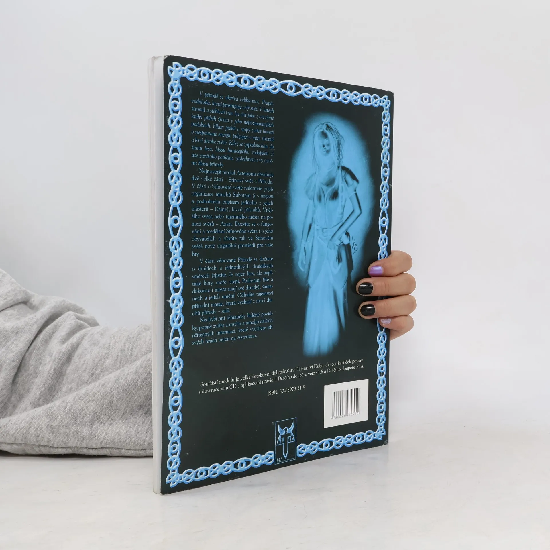 Modul obsahuje dvě velké části - Stínový svět a Přírodu. Modul obsahuje dvě velké části - Stínový svět a Přírodu. V části o Stínovém světě naleznete popis organizace mnichů Subotam (i s mapou a podrobným popisem jednoho z jejich klášterů - Daine), lovců přízraků, Vnějšího světa nebo tajemného města na pomezí světů Axary. Dozvíte se o fungování a rozdělení Stínového světa i o jeho obyvatelích, a získáte tak ve Stínovém světě nové originální prostředí pro vaše hry. V části věnované Přírodě se dočtete o druidech a jednotlivých druidských směrech (zjistíte, že nejen lesy, ale např. také hory, moře, stepi, Podzemní říše a dokonce i města mají své druidy), šamanech a jejich umění. Odhalíte tajemství přírodní (tzv. salové) magie, která vychází z moci duchů přírody - salů. Nechybí ani tématicky laděné povídky, popisy zvířat a rostlin a mnoho dalších užitečných informací, které využijete při svých hrách nejen na Asterionu. Součástí modulu je velké detektivně laděné dobrodružství Tajemství Dubu. Toto dobrodružství je hodně založené na procítěném hraní postav a i když jej budete hrát vícekrát, pokaždé může být jiné. Modul pro Dračí doupě i Drací doupě +. Nutné vlastnit základní Asterion nebo Asterion: Čas Temna.