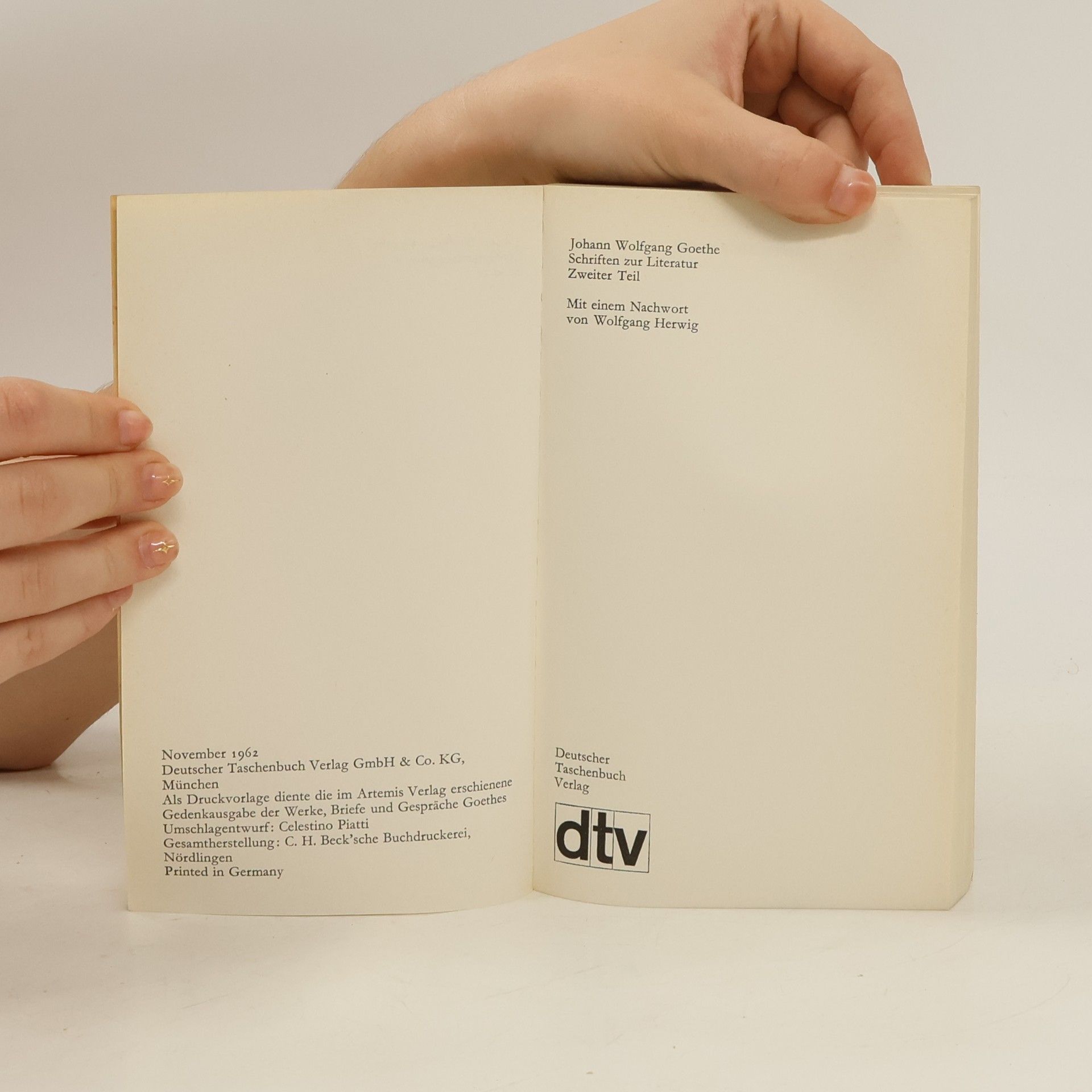 Schrifften zur Literatur. Zweiter Teil, Johann Wolfgang von Goethe