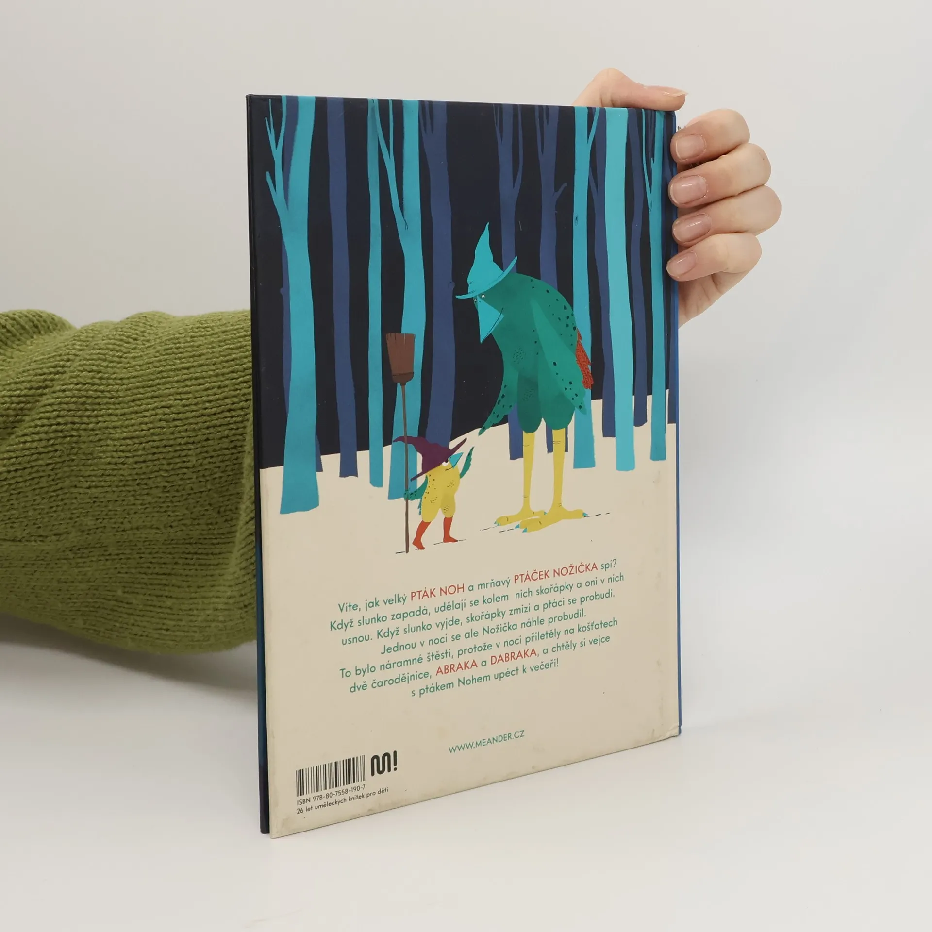 V dalším kresleném příběhu o ptáku Nohovi a ptáčku Nožičkovi čelí ptačí bráchové hladovým čarodějnicím. Víte, jak velký pták Noh a mrňavý ptáček Nožička spí? Když slunko zapadá, udělají se kolem nich skořápky a oni v nich usnou. Když slunko vyjde, skořápky zmizí a ptáci se probudí. Jednou v noci se ale Nožička náhle probudil. To bylo náramné štěstí, protože v noci přiletěly na košťatech dvě čarodějnice, Abraka a Dabraka, a chtěly si vejce s ptákem Nohem upéct k večeři! Nakladatelská anotace.