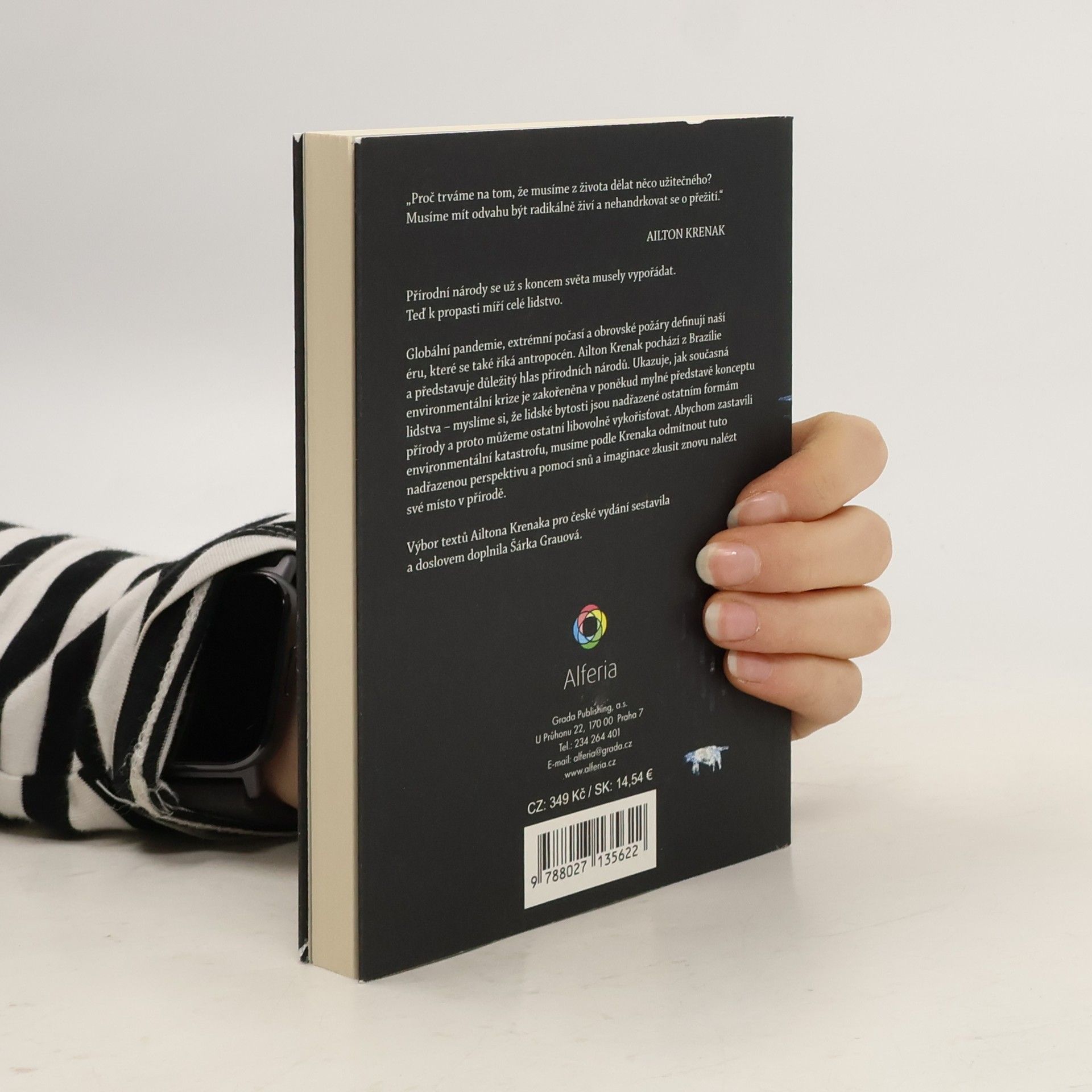 „Proč trváme na tom, že musíme z života dělat něco užitečného? Musíme mít odvahu být radikálně živí a nehandrkovat se o přežití.“Přírodní národy se už s koncem světa musely vypořádat. Teď k propasti míří celé lidstvo.Globální pandemie, extrémní počasí a obrovské požáry definují naší éru, které se také říká antropocén. Ailton Krenak pochází z Brazílie, kde je brán za důležitý hlas přírodních národů. Ukazuje, jak současná environmentální krize je zakořeněna v poněkud mylné představě konceptu lidstva – myslíme si, že lidské bytosti jsou nadřazené ostatním formám přírody a proto je můžeme libovolně vykořisťovat. Abychom zastavili environmentální katastrofu, musíme podle Krenaka odmítnout důsledky této nadřazené perspektivy a přijmout novou formu snění, která nám umožní znovu nalézt své místo v přírodě. V této knize ukazuje jak na to.Pro české vydání textů Ailtona Krenaka sestavila Šárka Grauová výbor z několik knih vydaných v portugalštině.