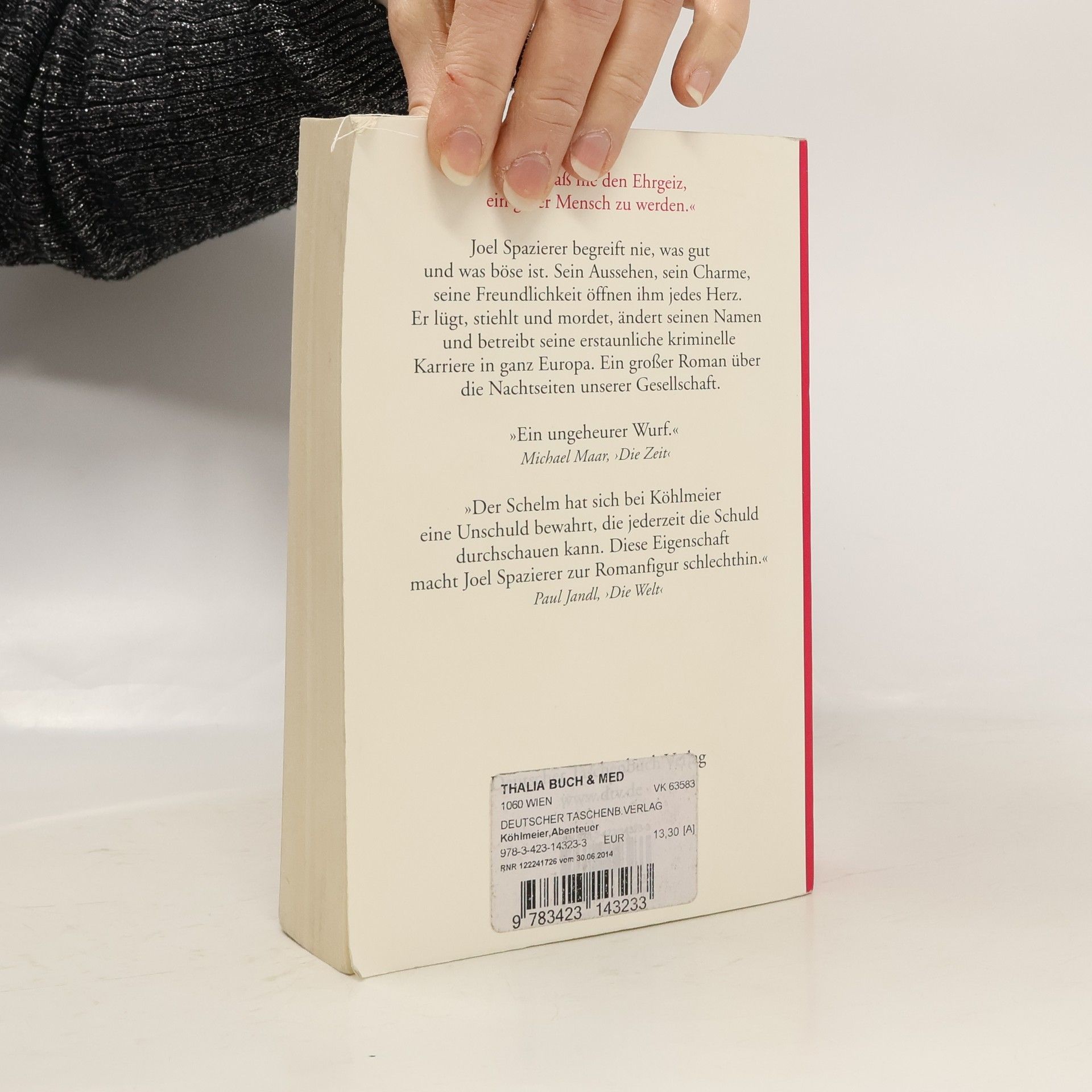 „Ich besaß nie den Ehrgeiz, ein guter Mensch zu werden.“ Joel Spazierer, geboren 1949 in Budapest, wächst bei seinen Großeltern auf und ist vier Jahre alt, als sie von Stalins Schergen abgeholt werden. Fünf Tage verbringt er allein in der Wohnung und lernt eine Welt ohne Menschen kennen. Joel Spazierer begreift nie, was gut und was böse ist. Sein Aussehen, sein Charme, seine Freundlichkeit öffnen ihm jedes Herz. Er lügt, stiehlt und mordet, ändert seinen Namen und betreibt seine kriminelle Karriere in vielen europäischen Ländern. Ein großer Roman über die Nachtseiten unserer Gesellschaft.