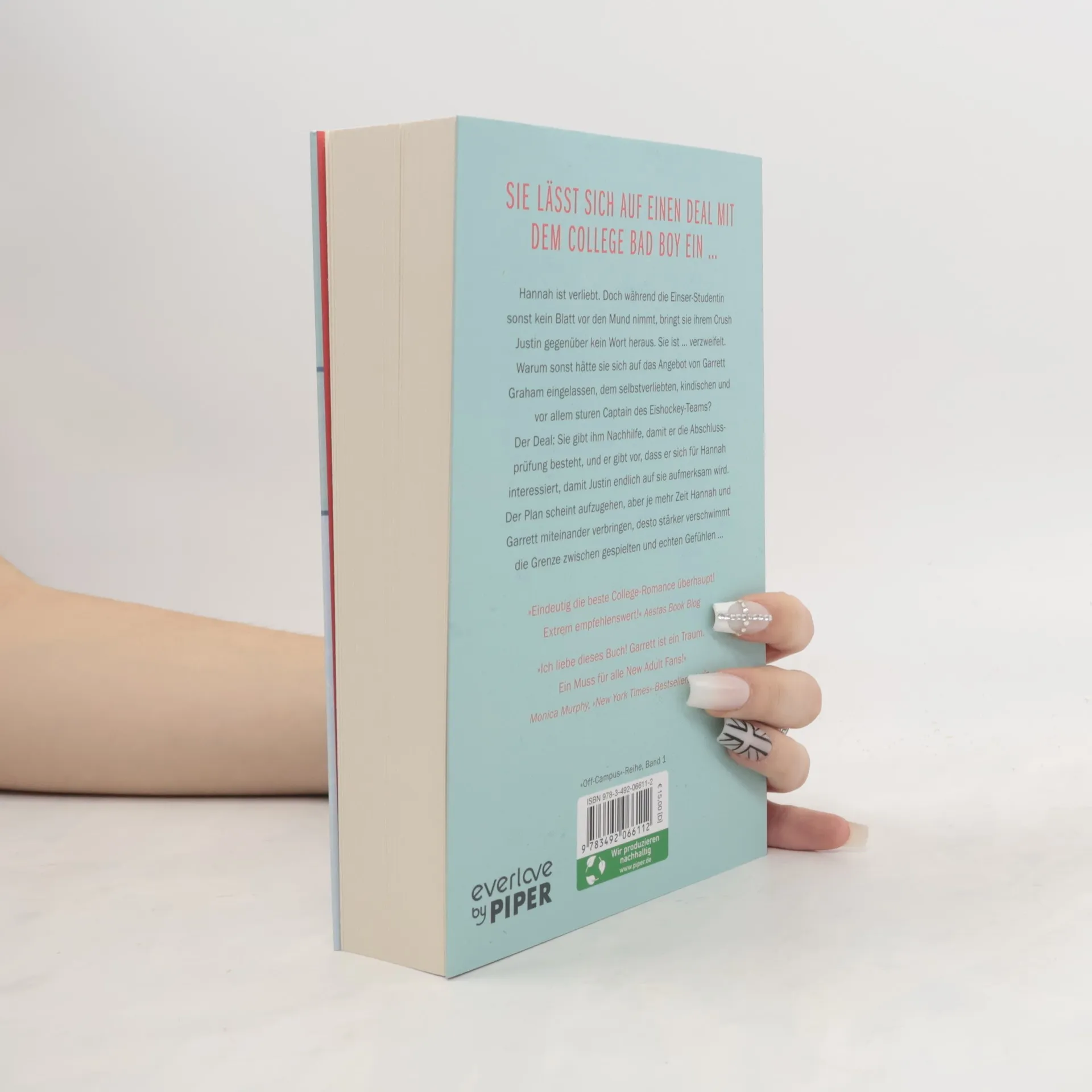 Sie lässt sich auf einen Deal mit dem College Bad Boy ein … Hannah ist verliebt. Doch während die Einser-Studentin sonst kein Blatt vor den Mund nimmt, bringt sie ihrem Crush Justin gegenüber kein Wort heraus. Sie ist ... verzweifelt. Warum sonst hätte sie sich auf das Angebot von Garrett Graham eingelassen, dem selbstverliebten, kindischen und vor allem sturen Captain des Eishockey-Teams? Der Deal: Sie gibt ihm Nachhilfe, damit er die Abschlussprüfung besteht, und er gibt vor, dass er sich für Hannah interessiert, damit Justin endlich auf sie aufmerksam wird. Der Plan scheint aufzugehen, aber je mehr Zeit Hannah und Garrett miteinander verbringen, desto stärker verschwimmt die Grenze zwischen gespielten und echten Gefühlen … »Eindeutig die beste College-Romance aller Zeiten! Extrem empfehlenswert!« Aestas Book Blog »Ich liebe dieses Buch! Garrett ist ein Traum. Ein Muss für alle New Adult Fans!« Monica Murphy, »New York Times«-Bestsellerautorin »Off-Campus«-Reihe, Band 1