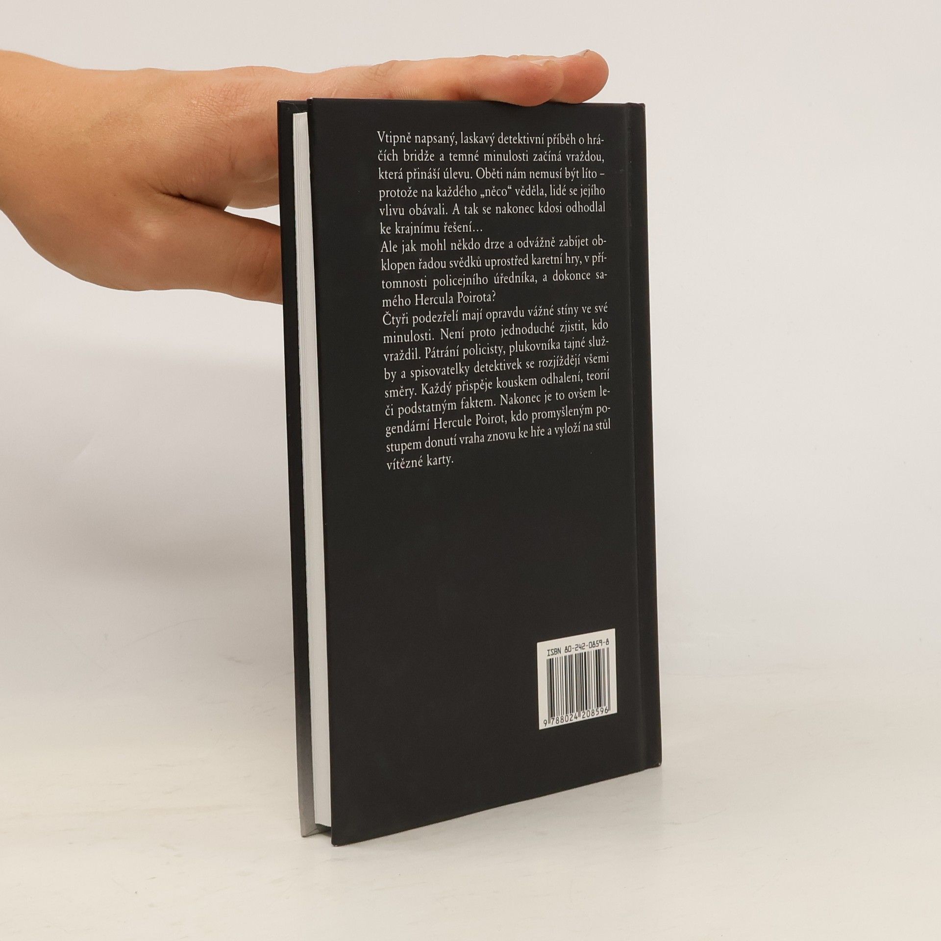 Vtipně napsaný, laskavý detektivní příběh o hráčích bridže a temné minulosti začíná vraždou, která přináší úlevu. Oběti nám nemusí být líto – protože na každého „něco“ věděla, lidé se jejího vlivu obávali. A tak se nakonec kdosi odhodlal až ke krajnímu řešení… Ale jak mohl někdo drze a odvážně zabíjet, obklopen řadou svědků, uprostřed karetní hry, v přítomnosti policejního úředníka, a dokonce samého Hercula Poirota? Čtyři podezřelí mají opravdu vážné stíny ve své minulosti. Není proto jednoduché zjistit, kdo vraždil kdysi i nyní. Pátrání policejního úředníka, plukovníka tajné služby a spisovatelky detektivek se rozjíždějí všemi směry. Každý přispěje kouskem odhalení, teorií či podstatným faktem. Nakonec je to ovšem Hercule Poirot, kdo promyšleným postupem donutí vraha znovu ke hře a vyloží na stůl vítězné karty.... celý text