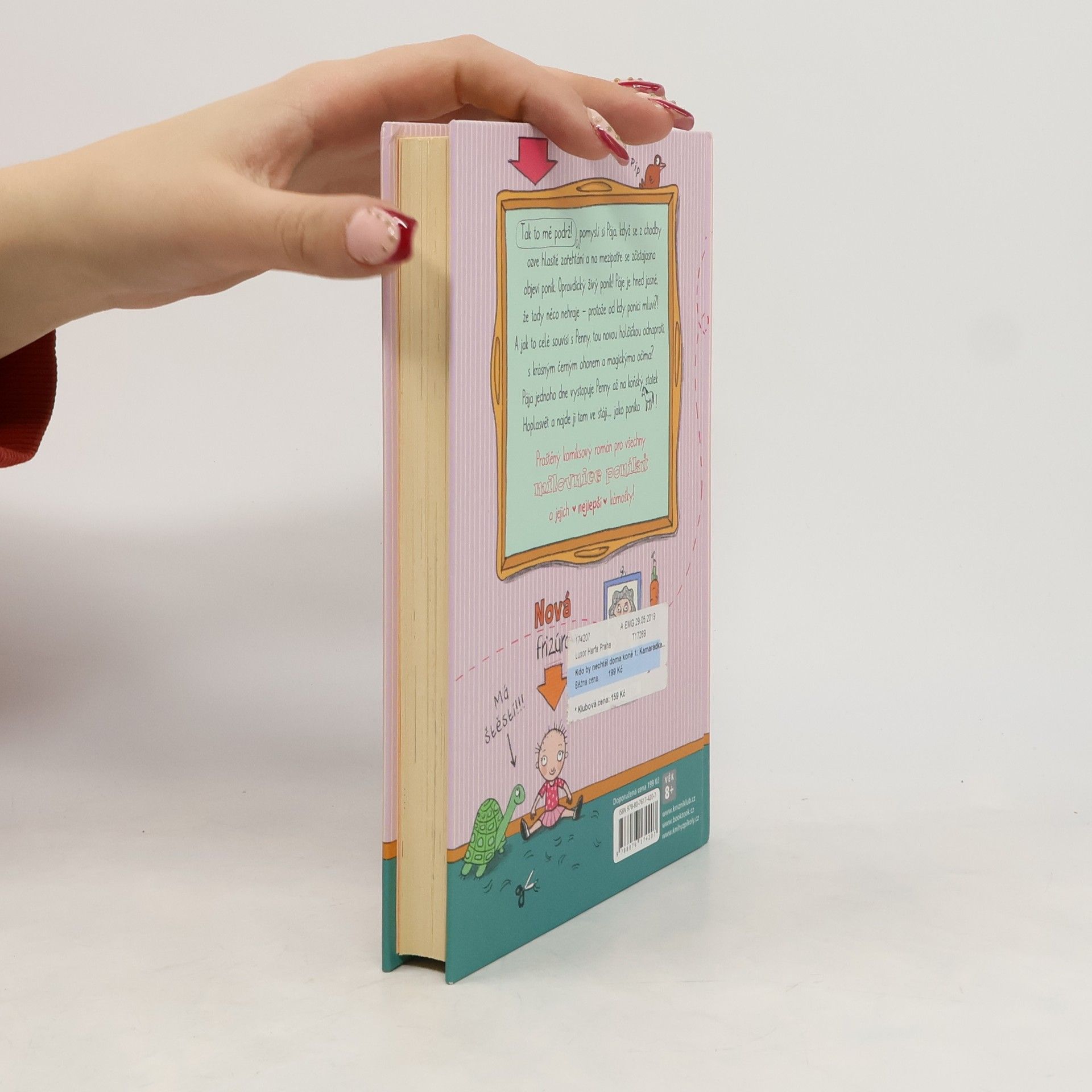 Tak to mě podrž! pomyslí si Pája, když se z chodby ozve hlasité zařehtání a na mezipatře se zčistajasna objeví poník. Opravdický živý poník! Páje je hned jasné, že tady něco nehraje – protože od kdy poníci mluví?! A jak to celé souvisí s Penny, tou novou holčičkou odnaproti, s krásným černým ohonem a magickýma očima? Pája jednoho dne vystopuje Penny až na koňský statek Hoplasvět a najde ji tam ve stáji... jako poníka!